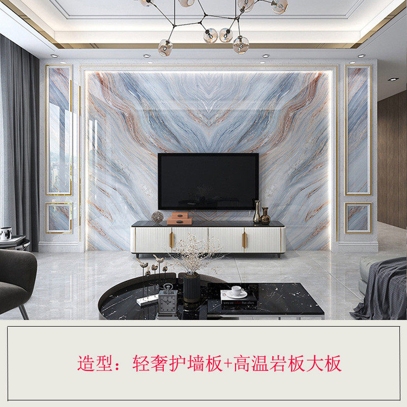 轻奢岩板电视背景墙大理石瓷砖简约现代美式别墅客厅沙发连纹大板