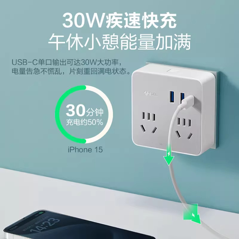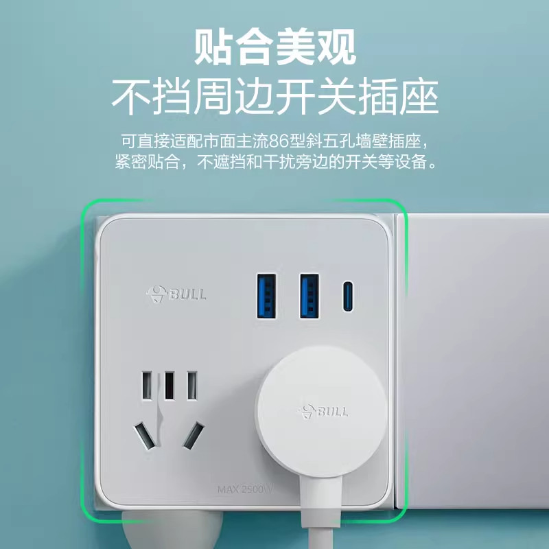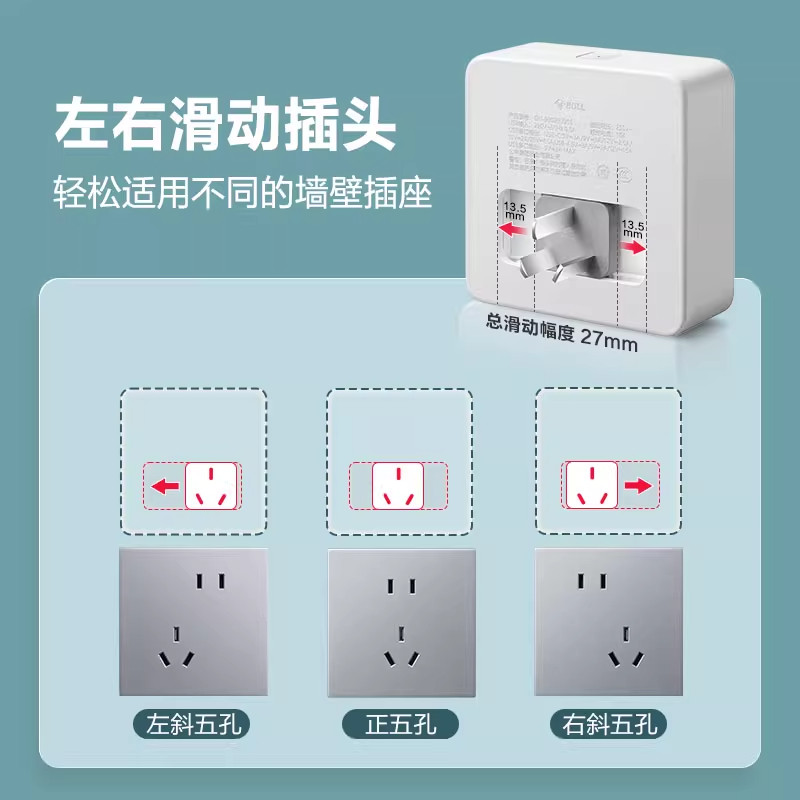 公牛墙插转换器小插座魔方扩展转换插头多孔超薄扁插排床头充电器
