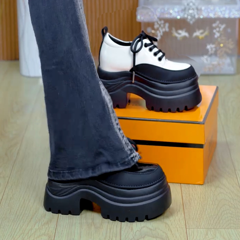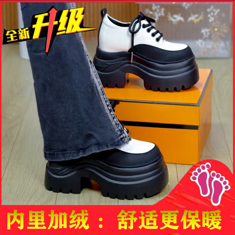 小个子内增高厚底乐福鞋女潮2025秋冬新款透气百搭小皮鞋休闲单鞋