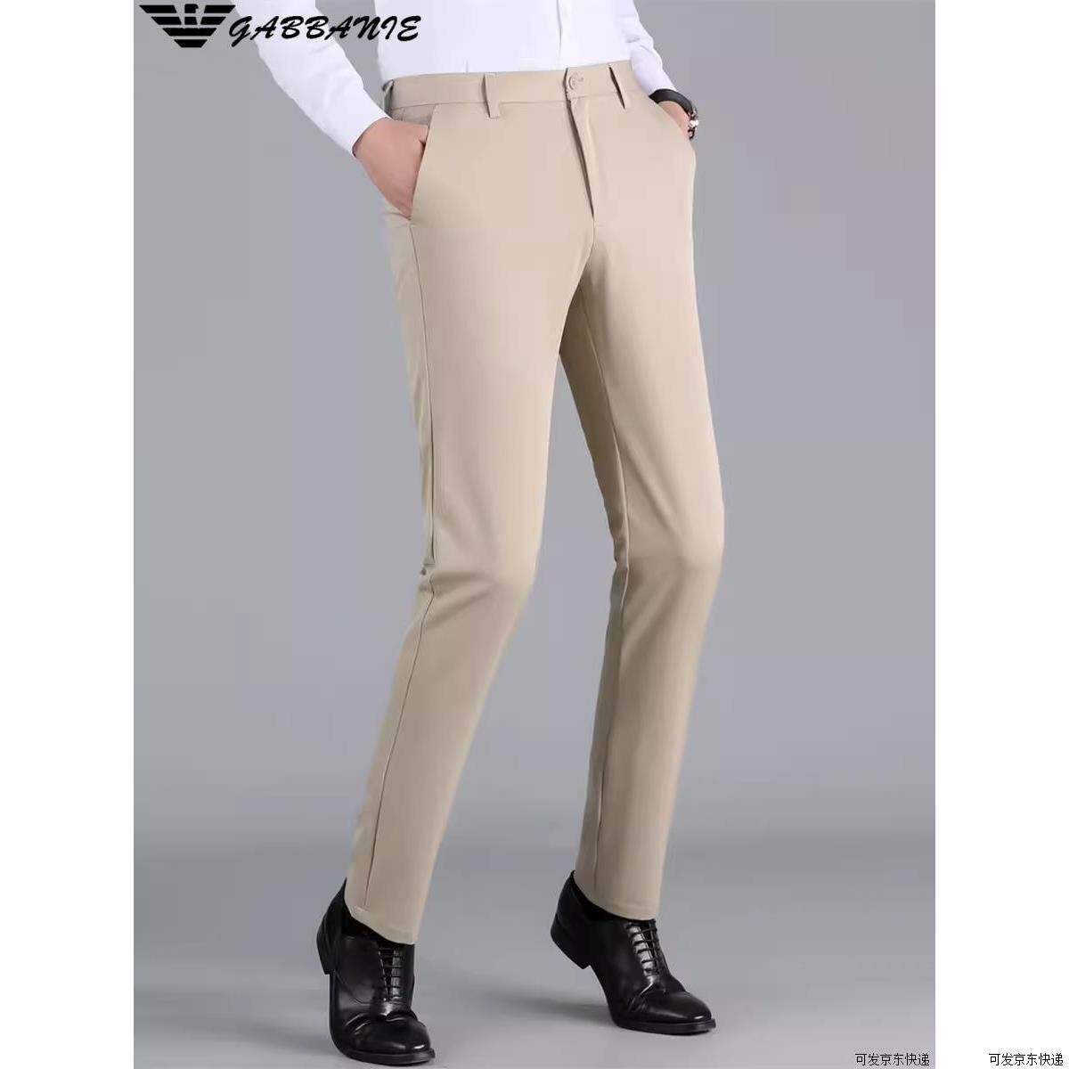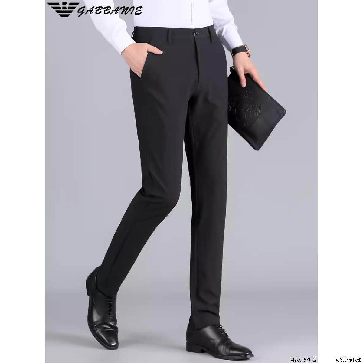 GABBANIE冰丝小脚裤男韩版修身西裤弹力直筒商务休闲裤秋冬厚款