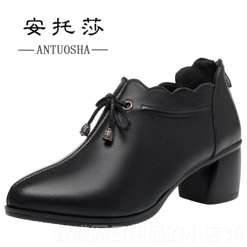 高档士皮鞋202年新春秋真皮时尚洋气妈妈5女单鞋女粗跟中跟款中年