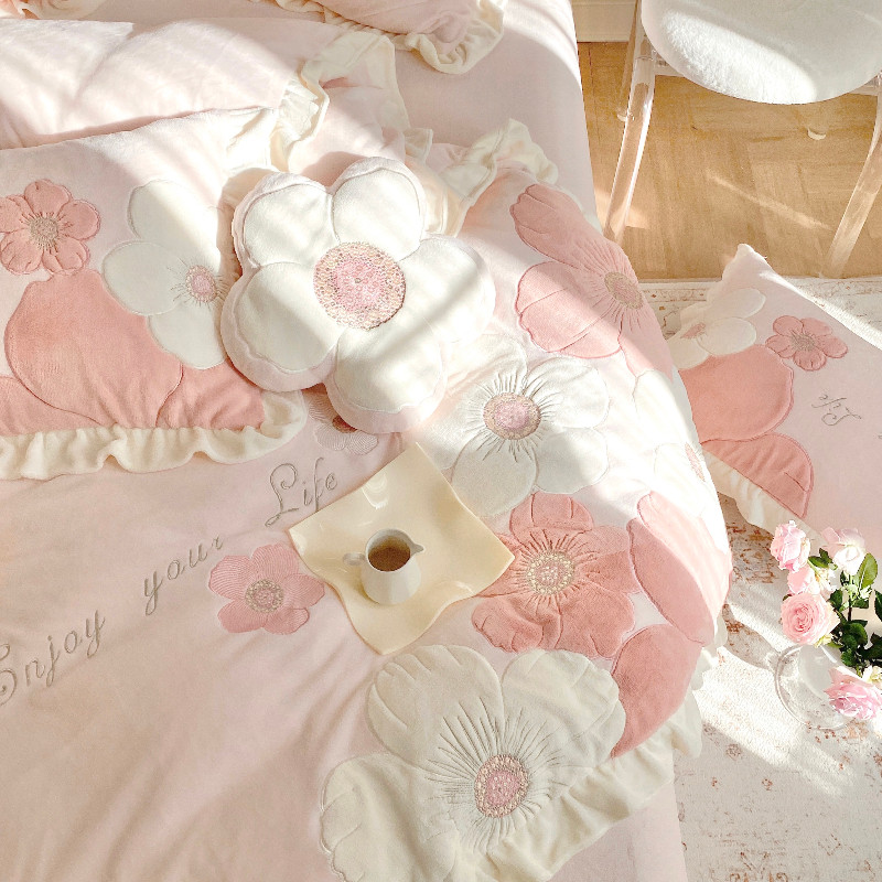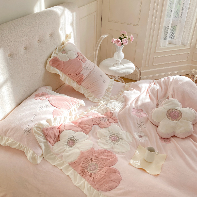 花朵贴布刺绣加厚珊瑚绒被套床品