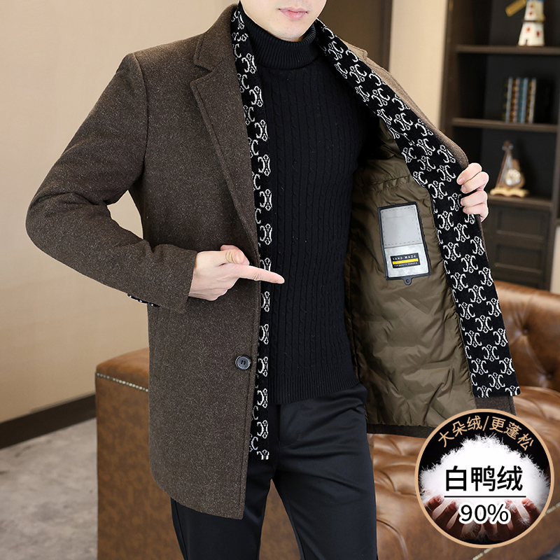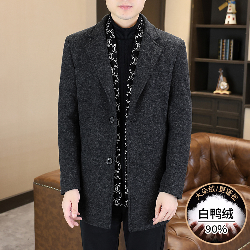 恒源祥毛呢大衣男士中长款呢子风衣高端保暖羽绒服加厚西装外套潮