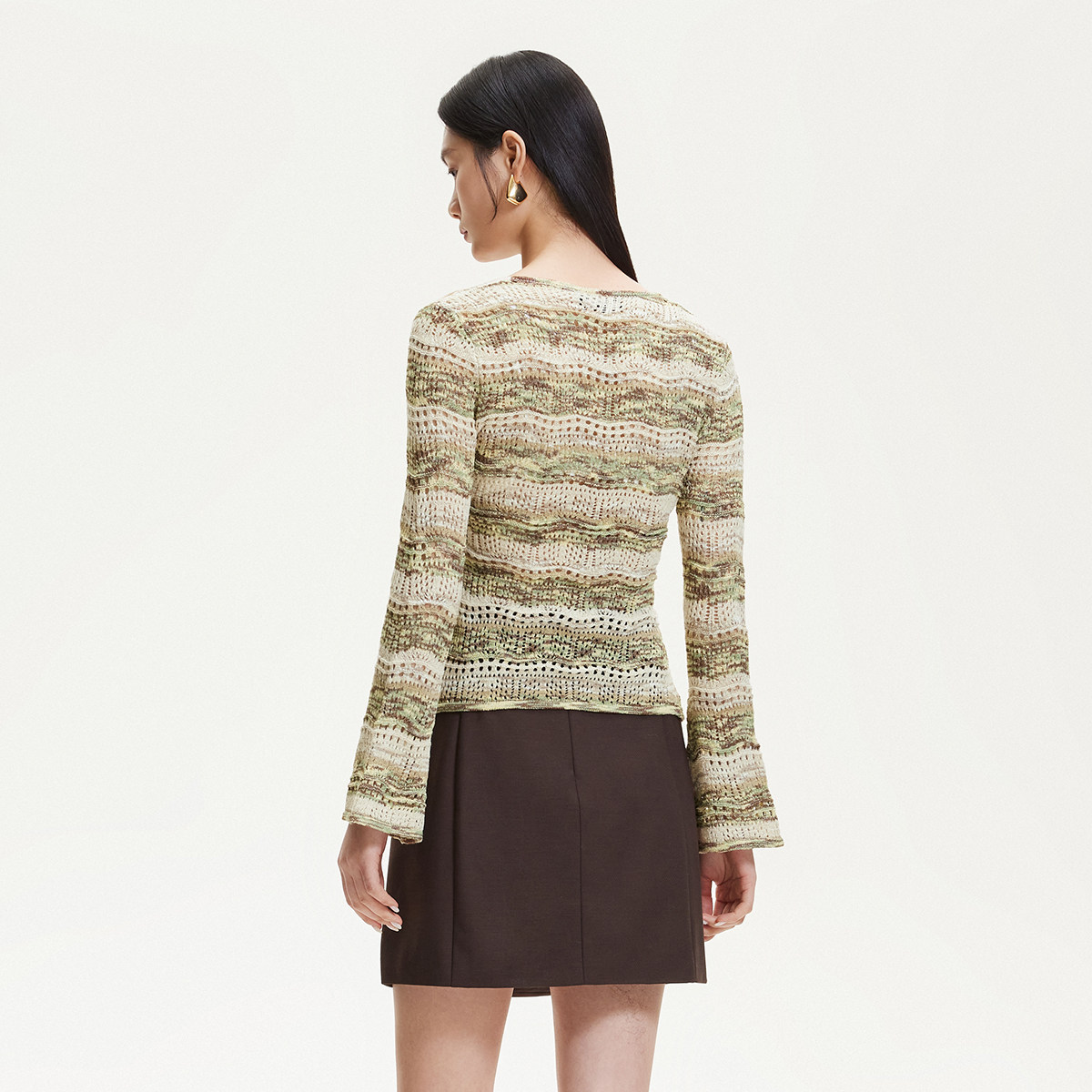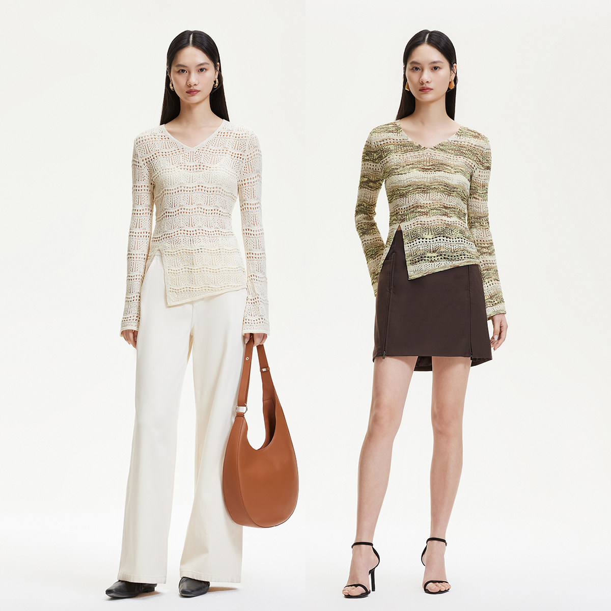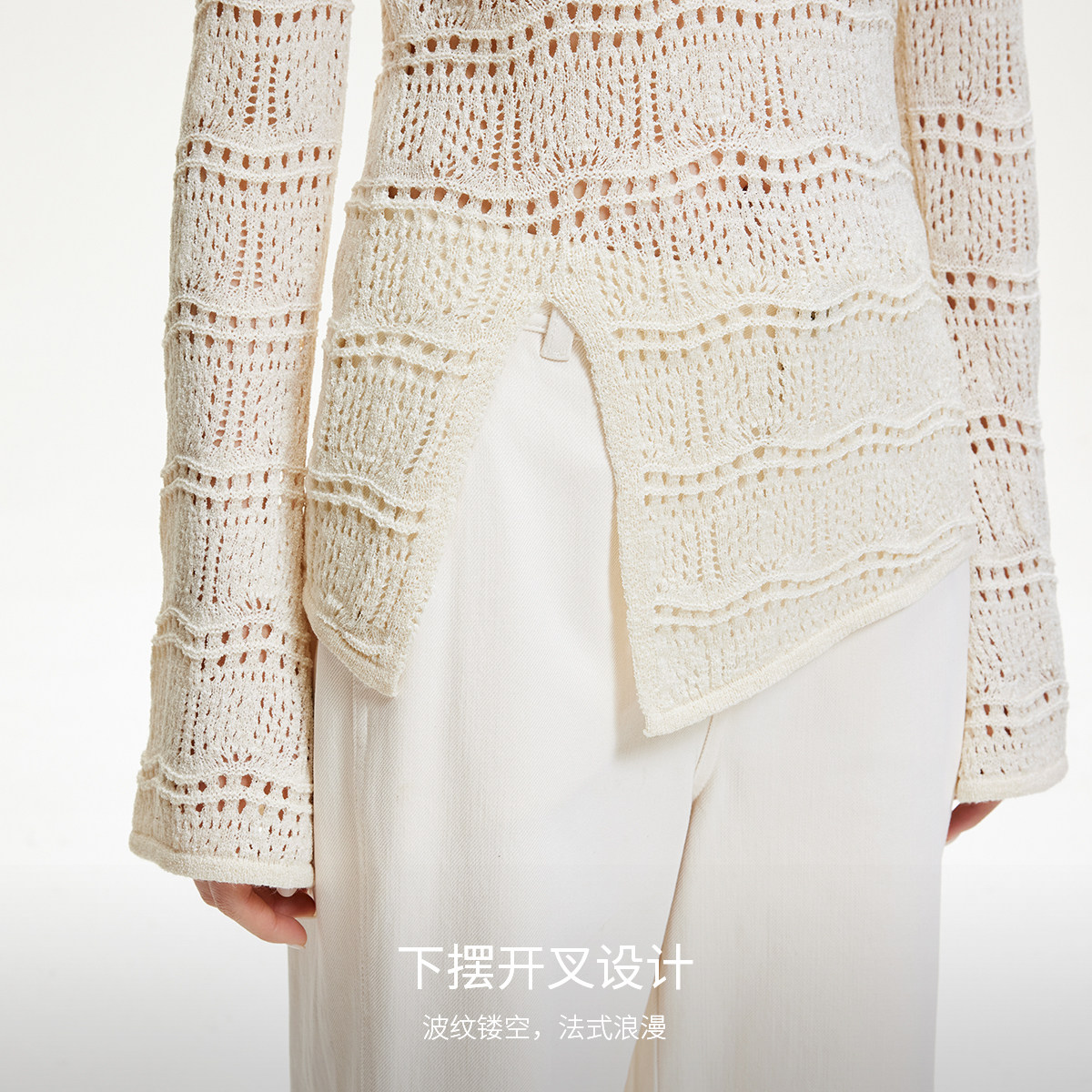 Vero Moda奥莱针织衫女2025秋季新款商场同款波纹镂空V领法式上衣