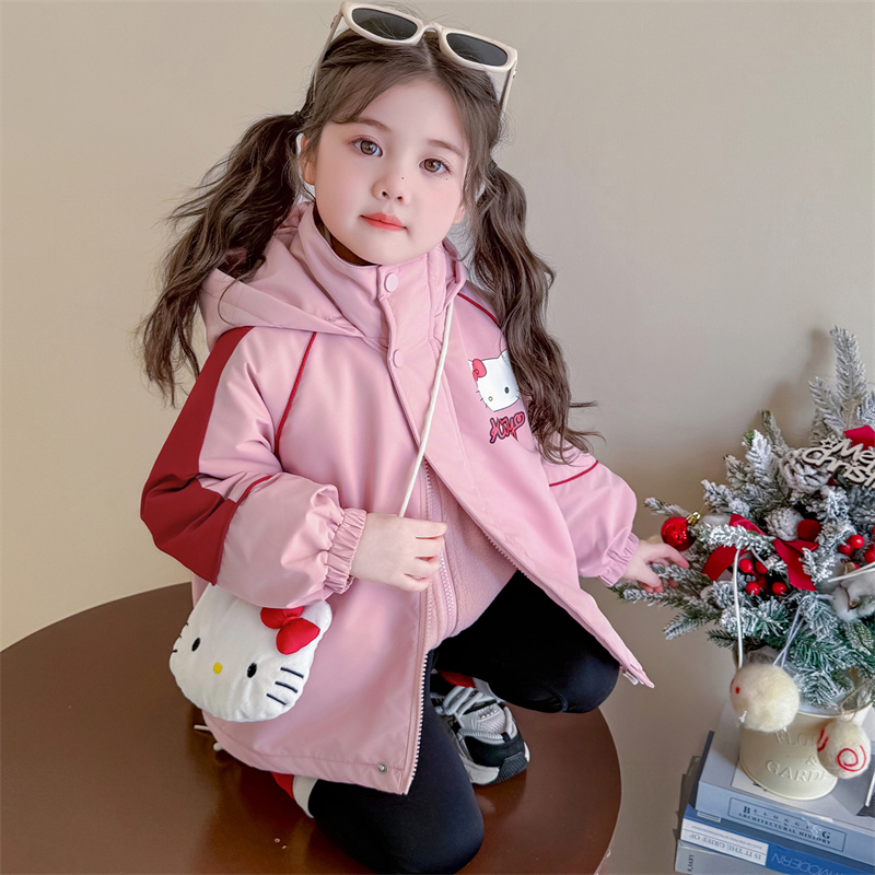 女童外套秋冬新款儿童加绒加厚三合一冲锋衣中小童洋气连帽上衣潮