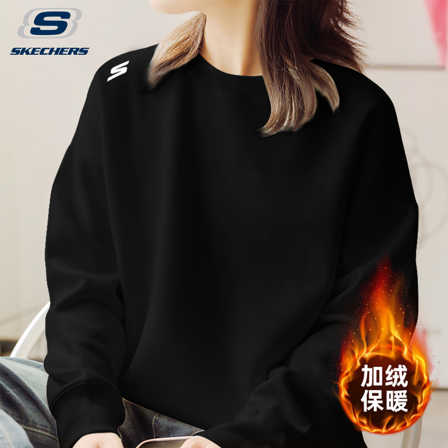 斯凯奇加绒卫衣女春季显瘦运动服