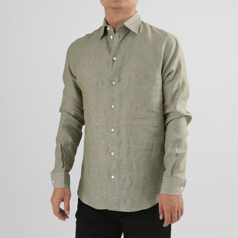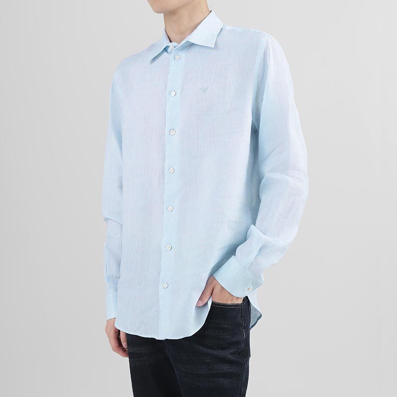 Armani阿玛尼EA 男士亚麻休闲长袖衬衫银泰百货 300095