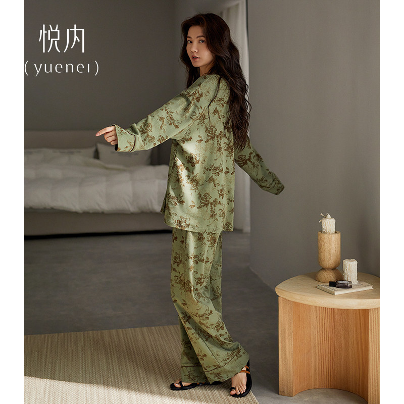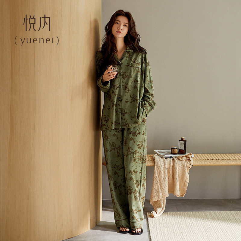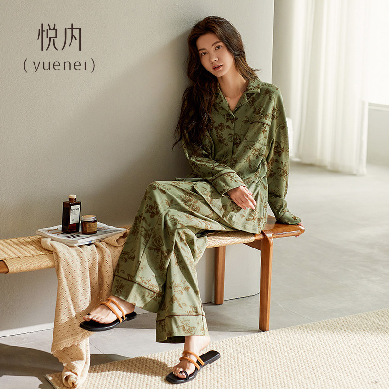 悦内睡衣女春秋款秋季纯棉长袖长裤家居服轻奢风高级感水墨画套装