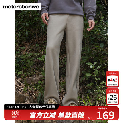 美特斯邦威潮流华夫格加绒时尚卫裤男春夏新款百搭休闲宽松阔腿裤