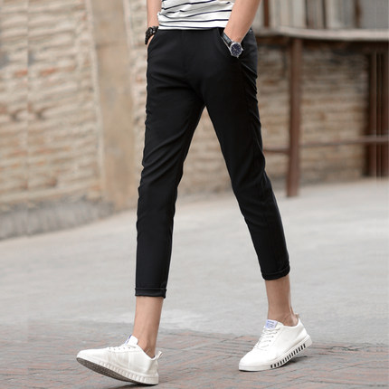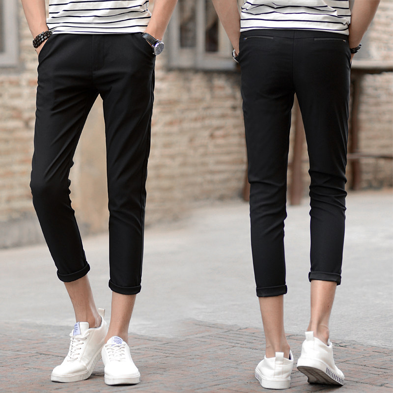 夏天潮流九分裤男休闲裤学生小脚裤修身型小西裤黑色9分裤不粘毛