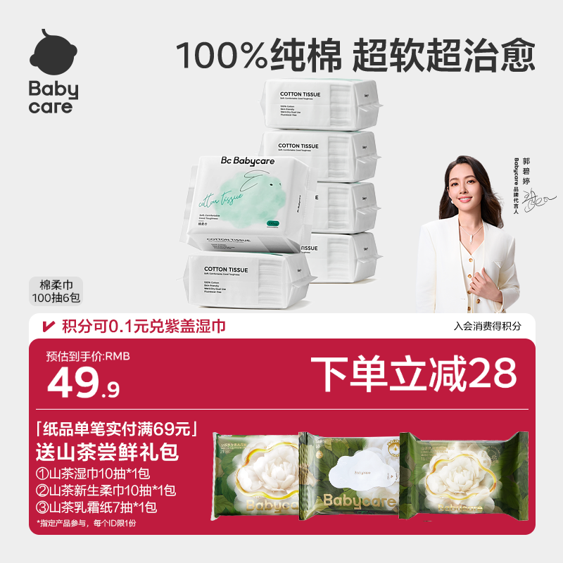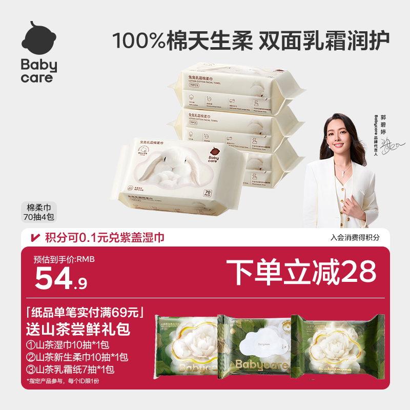 babycare兔兔乳霜棉柔巾干湿两用新生一次性100%纯棉洗脸巾婴幼儿