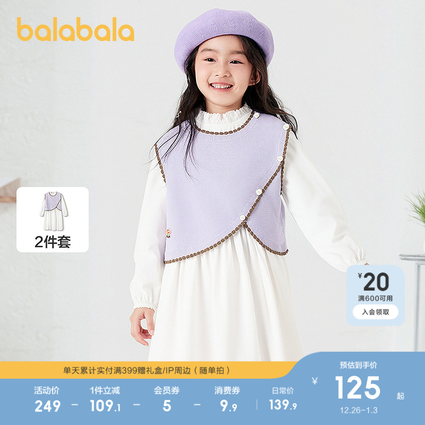 巴拉巴拉童装女童连衣裙子套装秋装两件套中大童甜美花边立领洋气