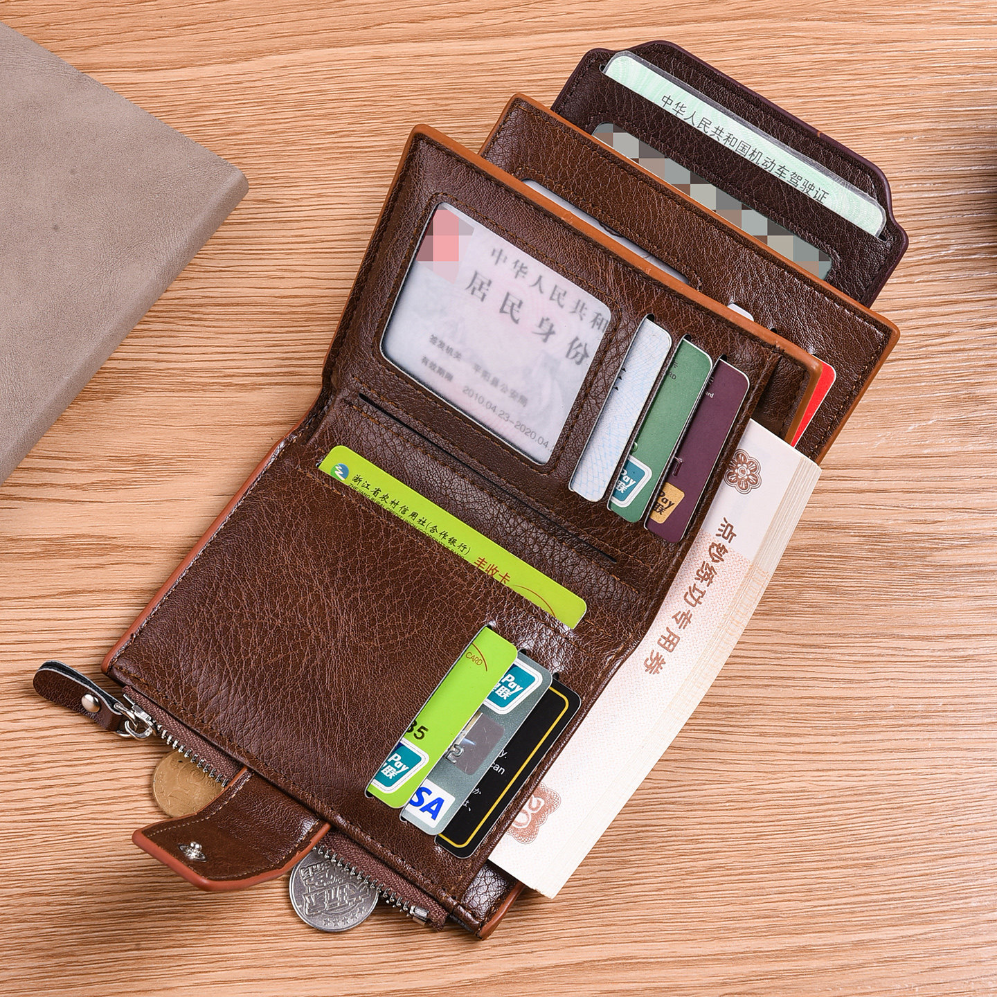 短款钱包男士多功能竖款大容量驾驶证皮夹卡包一体多卡位三折钱夹