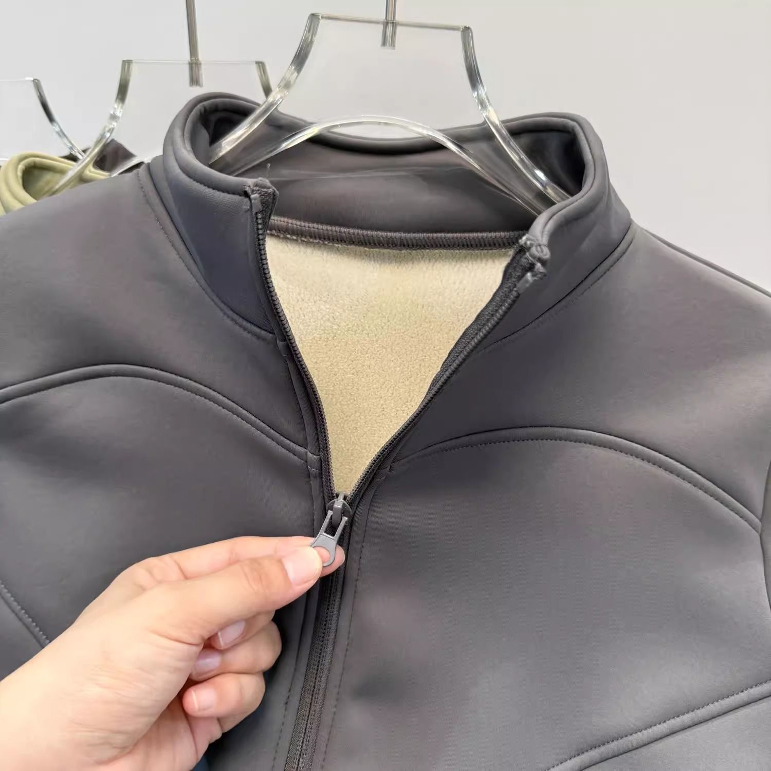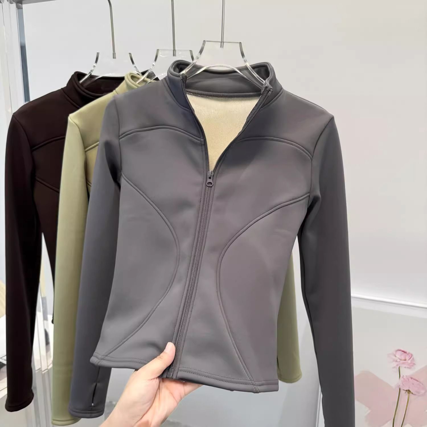 秋冬显瘦修身保暖加绒外套女立领长袖运动夹克瑜伽上衣跑步健身服