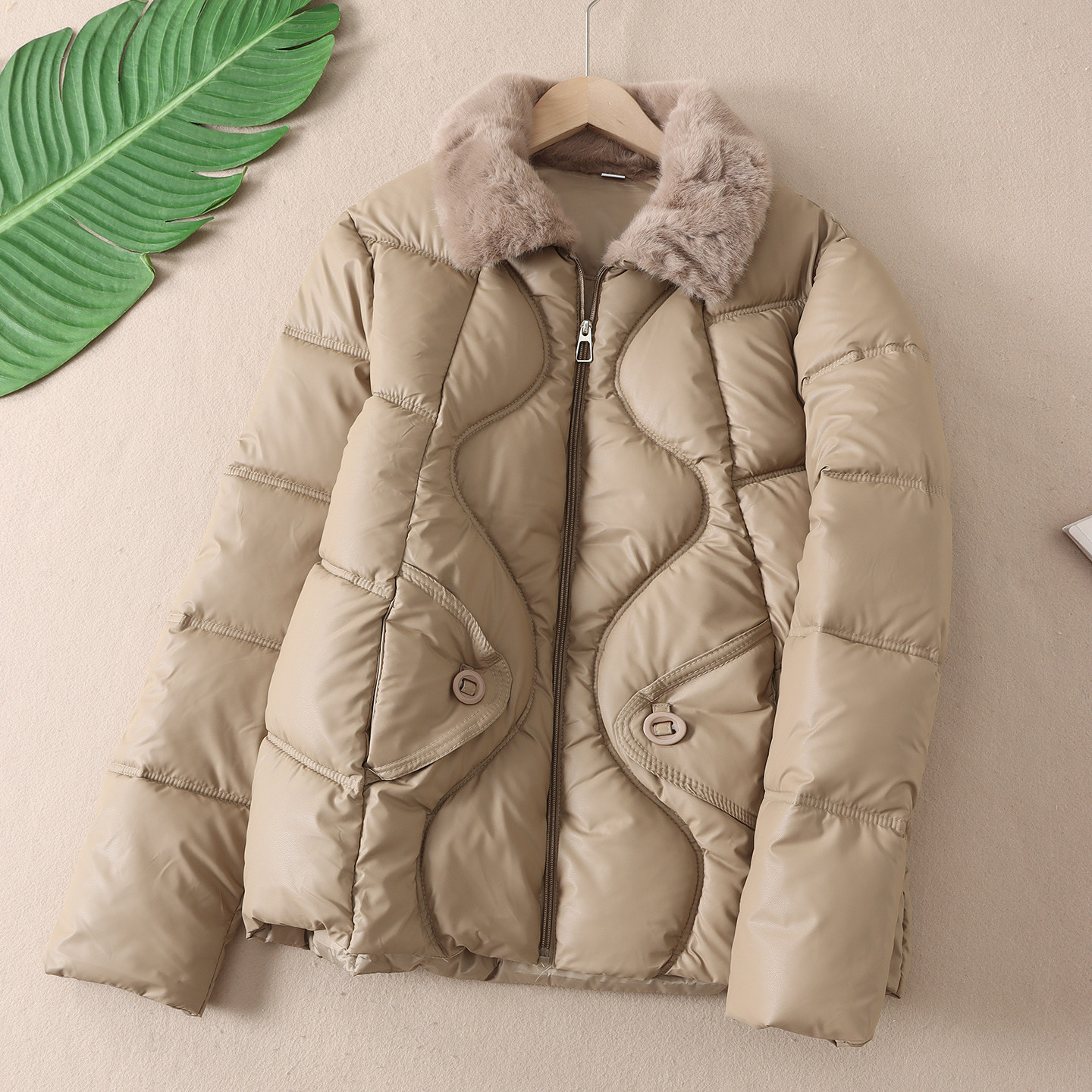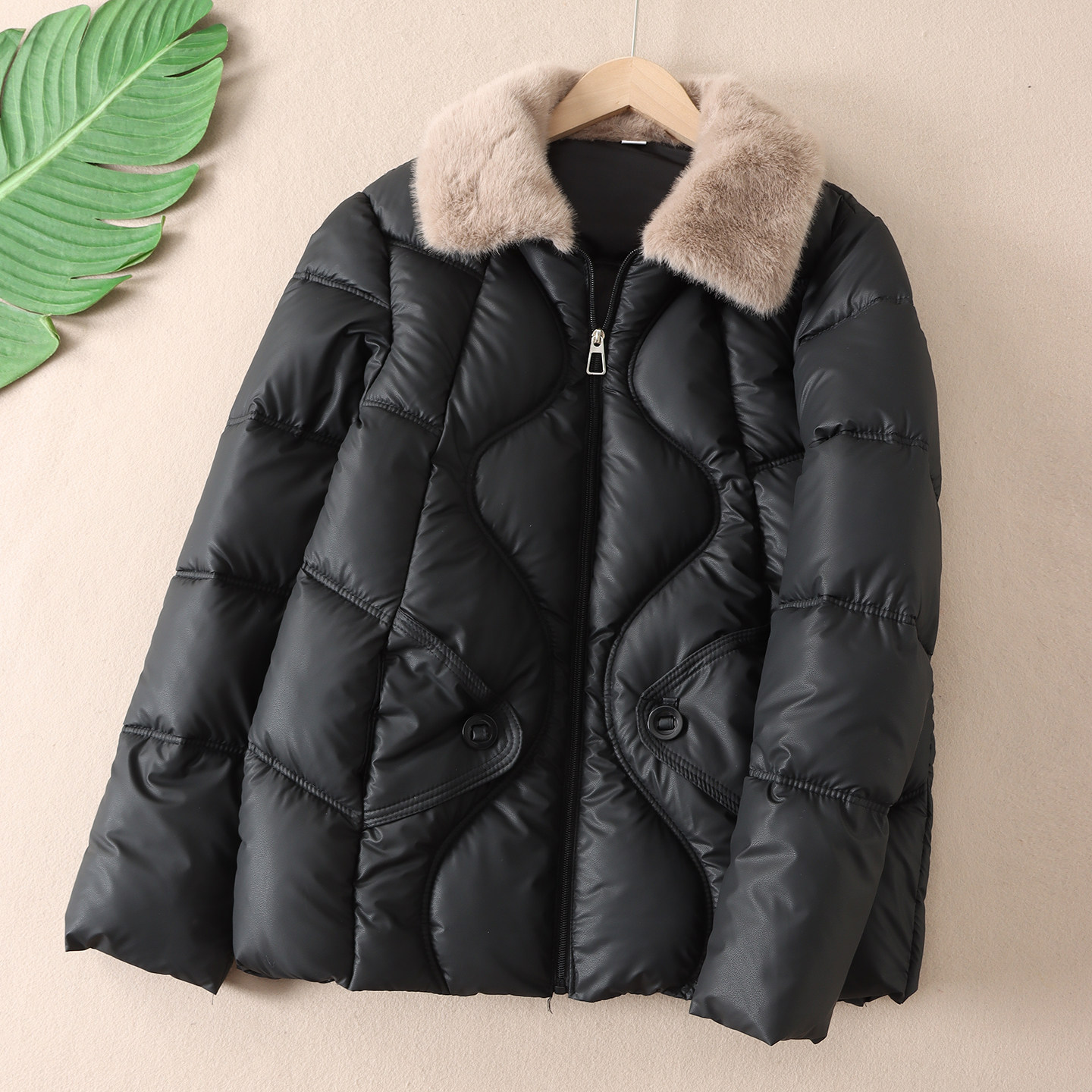 加厚仿兔毛翻领冬新款中老年妈妈棉服时尚显瘦绗线女装棉衣 F164