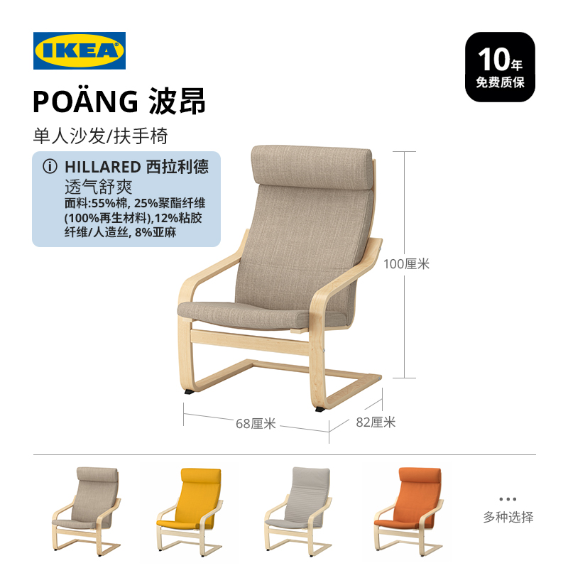 IKEA宜家POANG波昂布艺沙发椅单人休闲椅阳台客厅办公室躺椅
