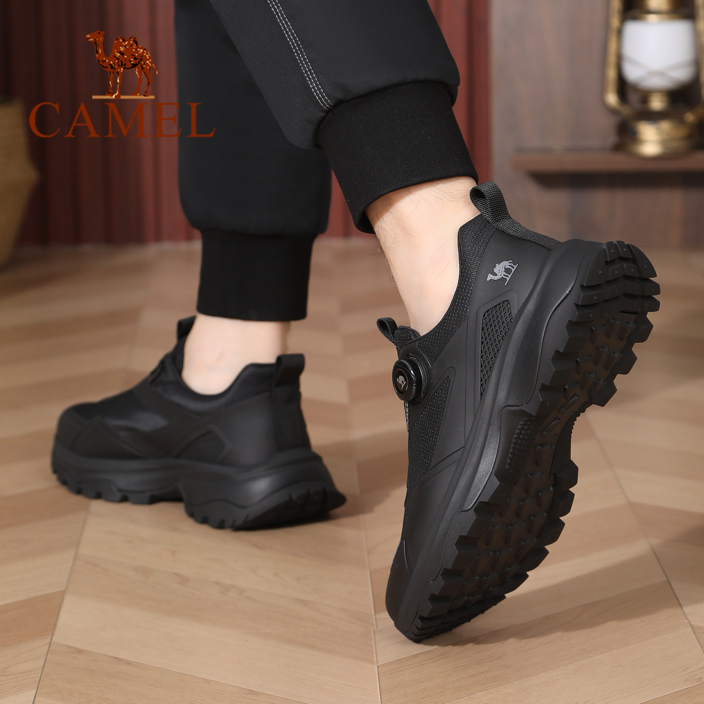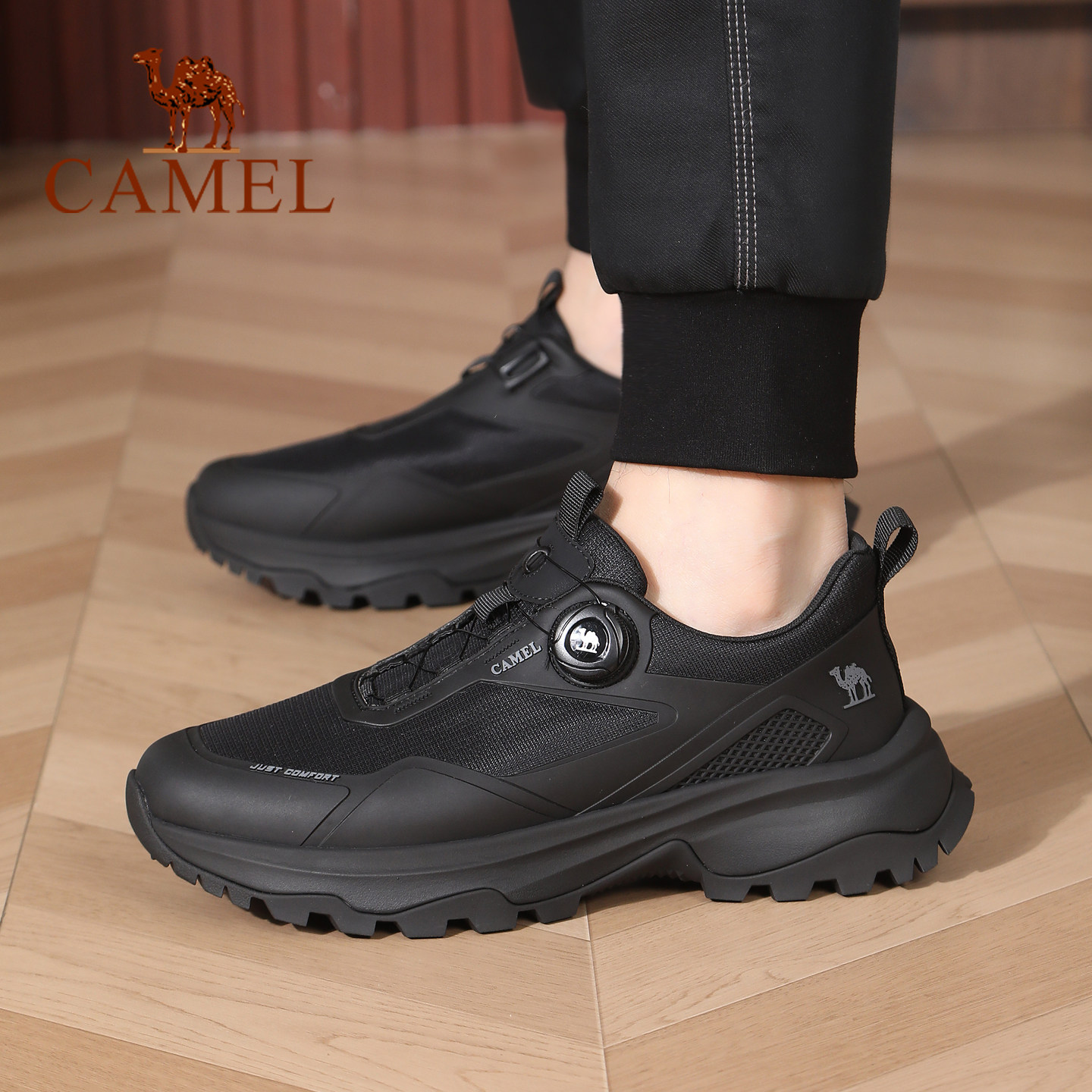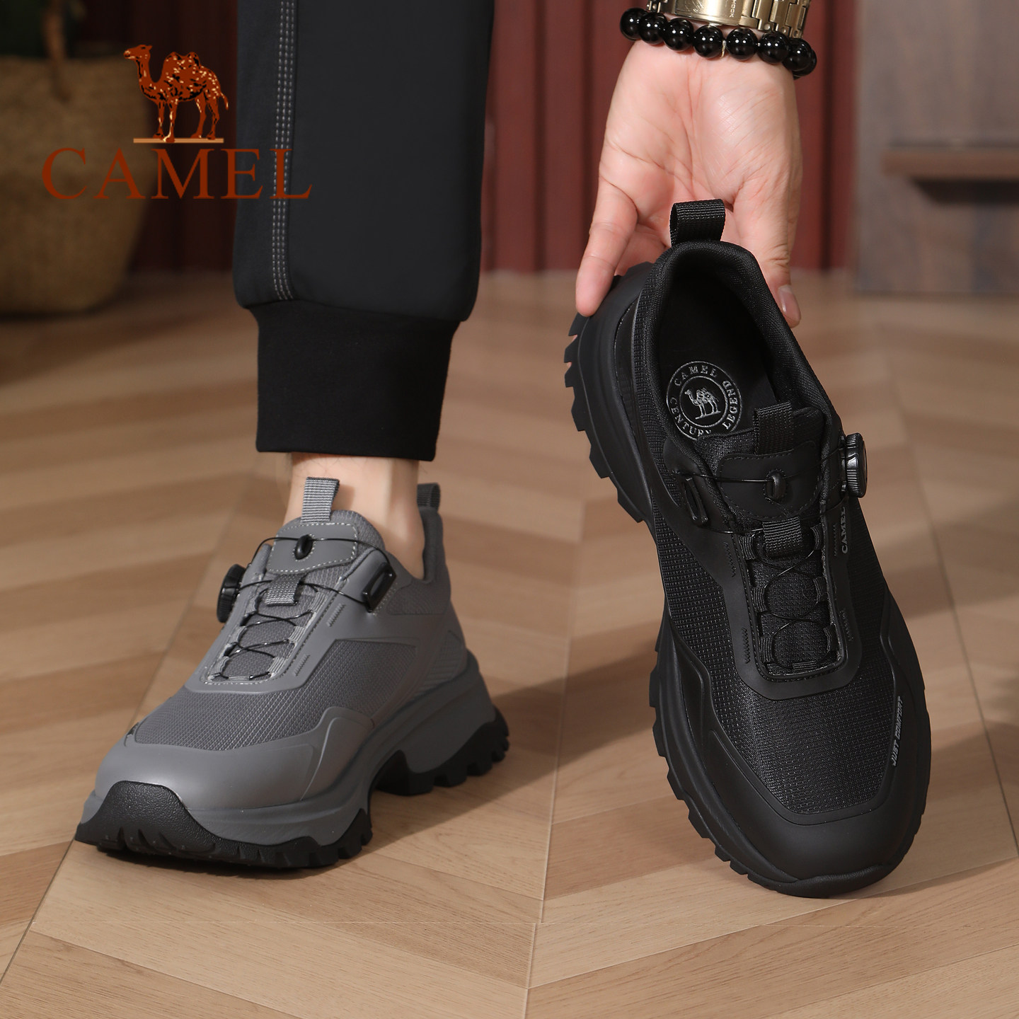 Camel/骆驼男鞋2025秋季新款透气网面运动鞋旋转纽扣户外登山鞋