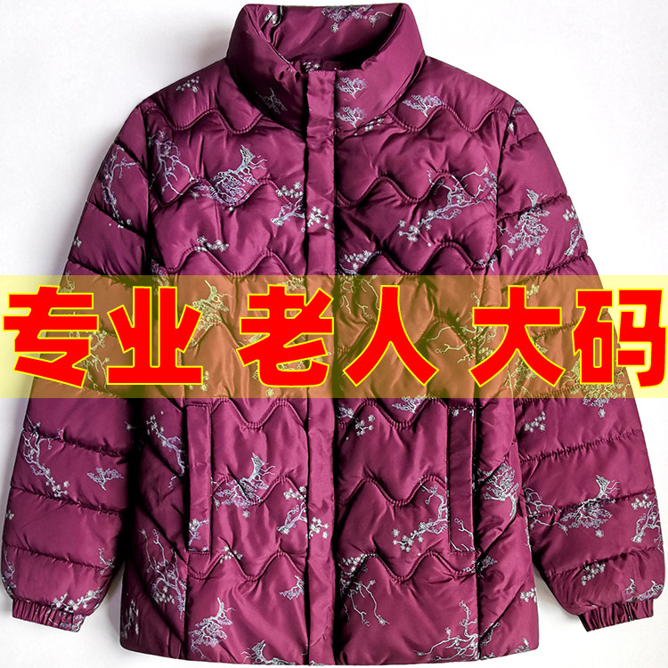 妈妈外穿轻薄羽绒棉服加肥加大码奶奶肥佬棉袄大号胖太太棉衣外套