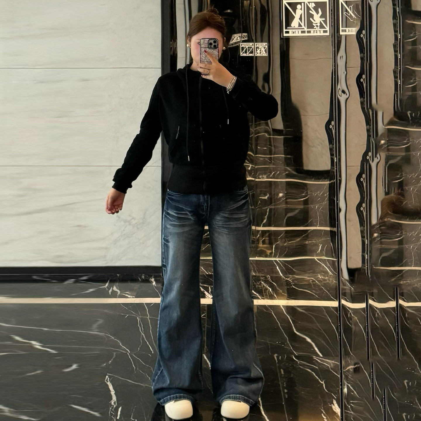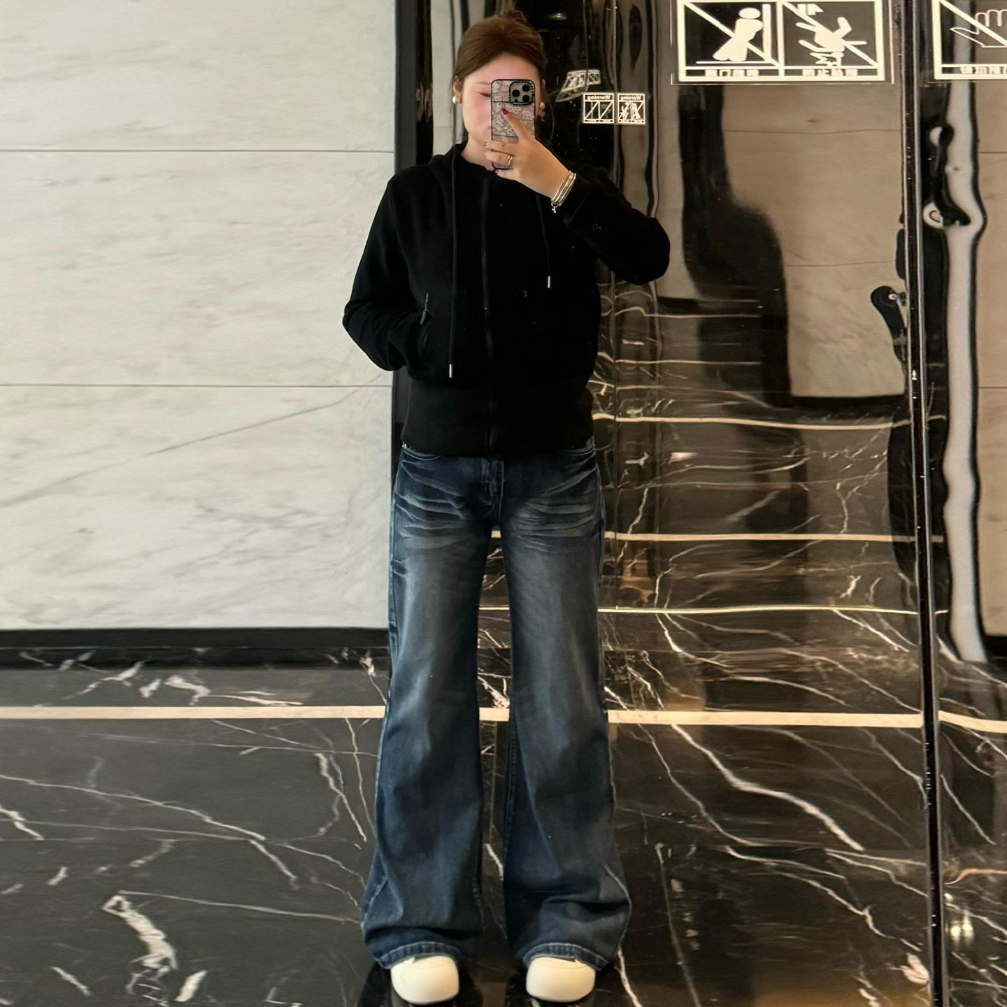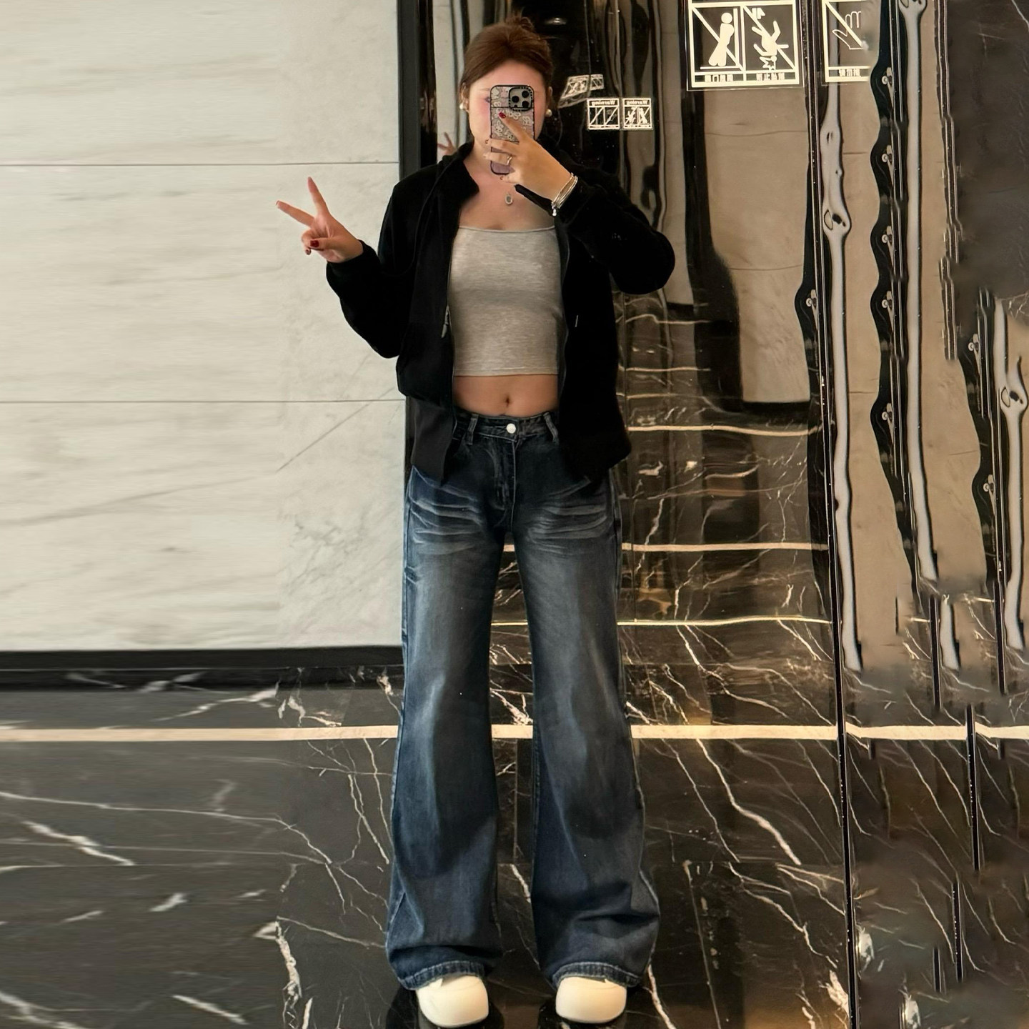 300斤特大码女装美式复古高街微喇牛仔裤女新款胖mm显瘦阔腿裤子