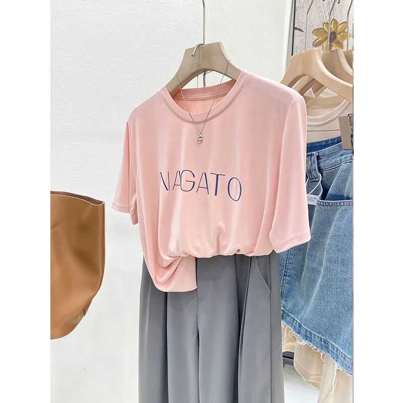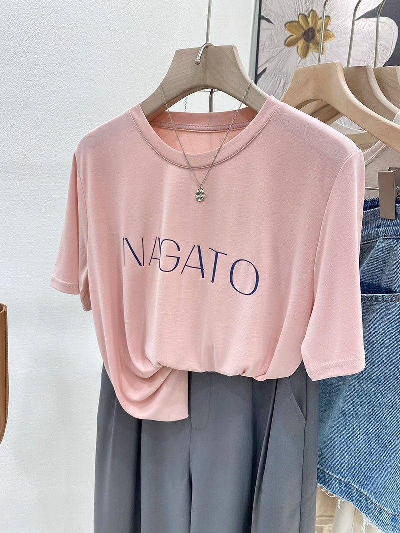 字母印花短袖t恤女超手感莫代尔简约百搭柔软宽松圆领体恤上衣
