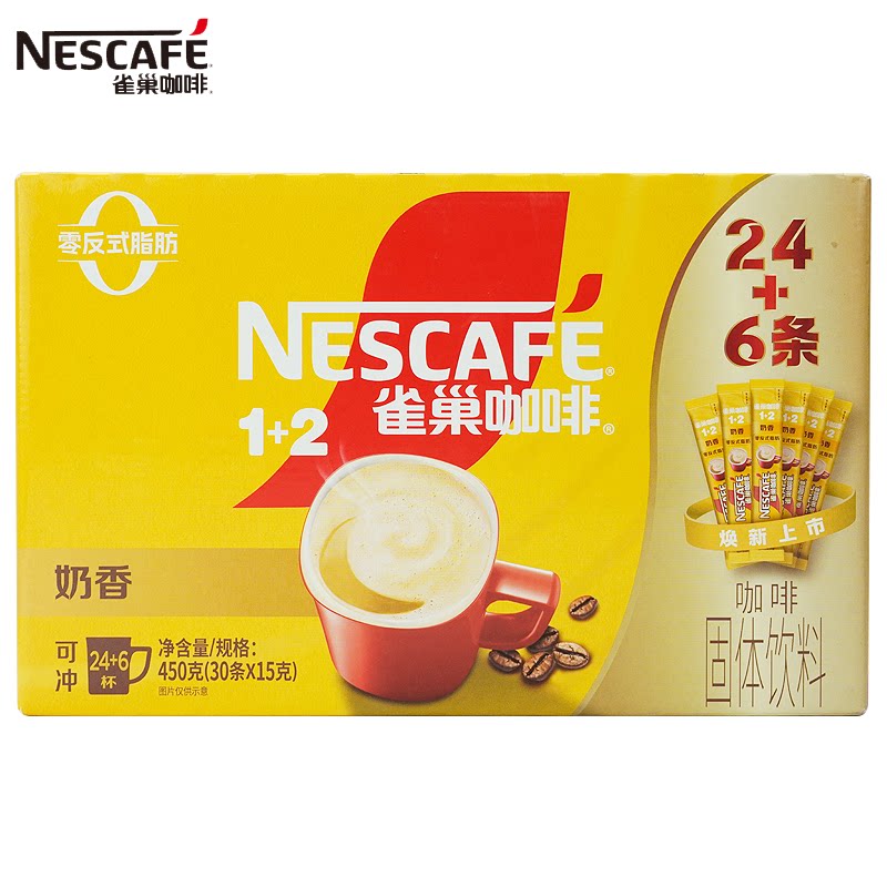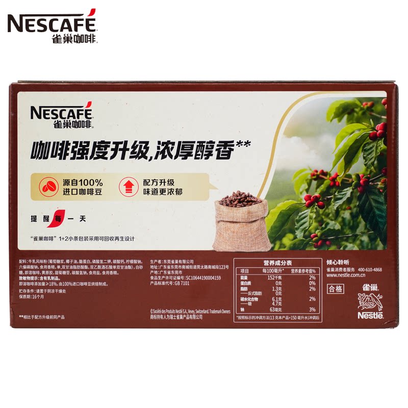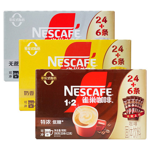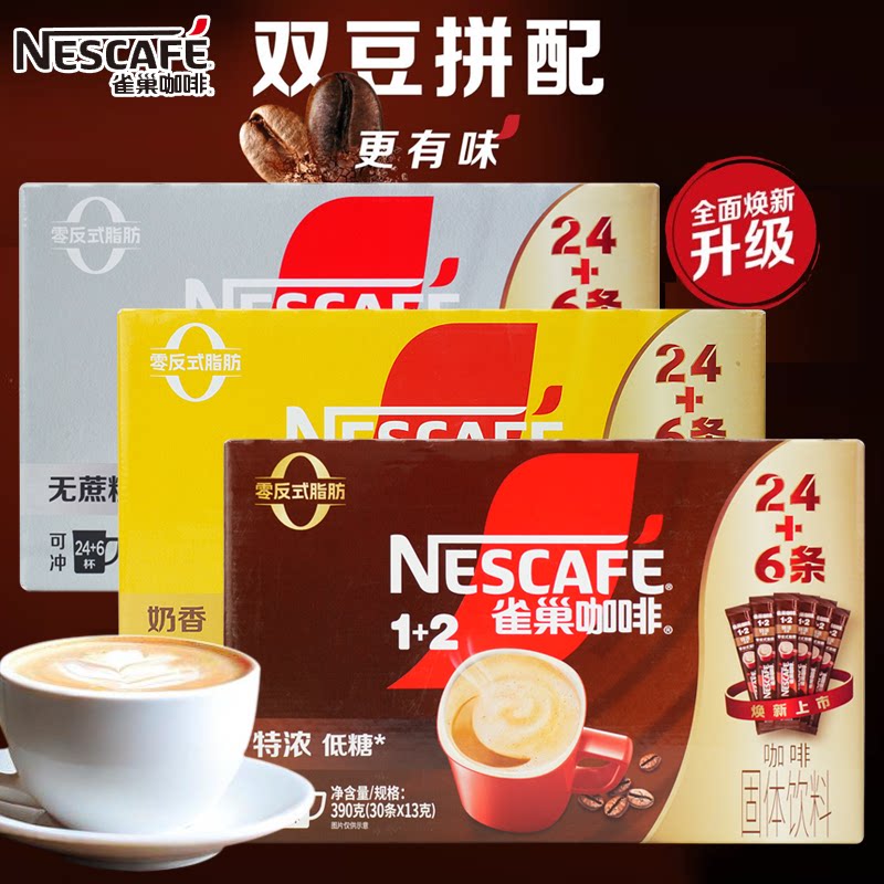 雀巢咖啡特浓原味奶香30条三合一盒装学生办公室速溶提神咖啡