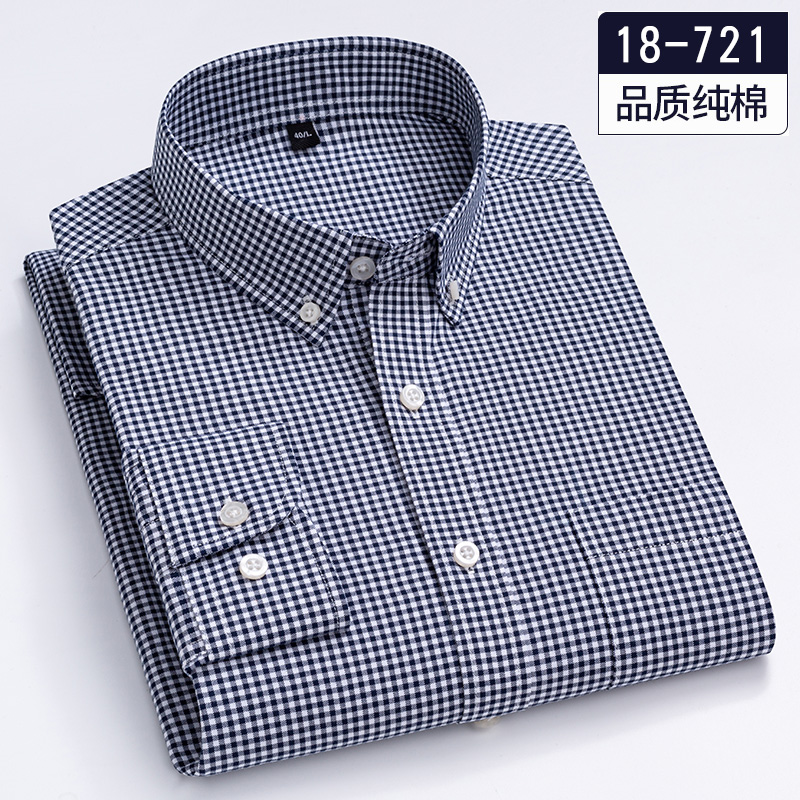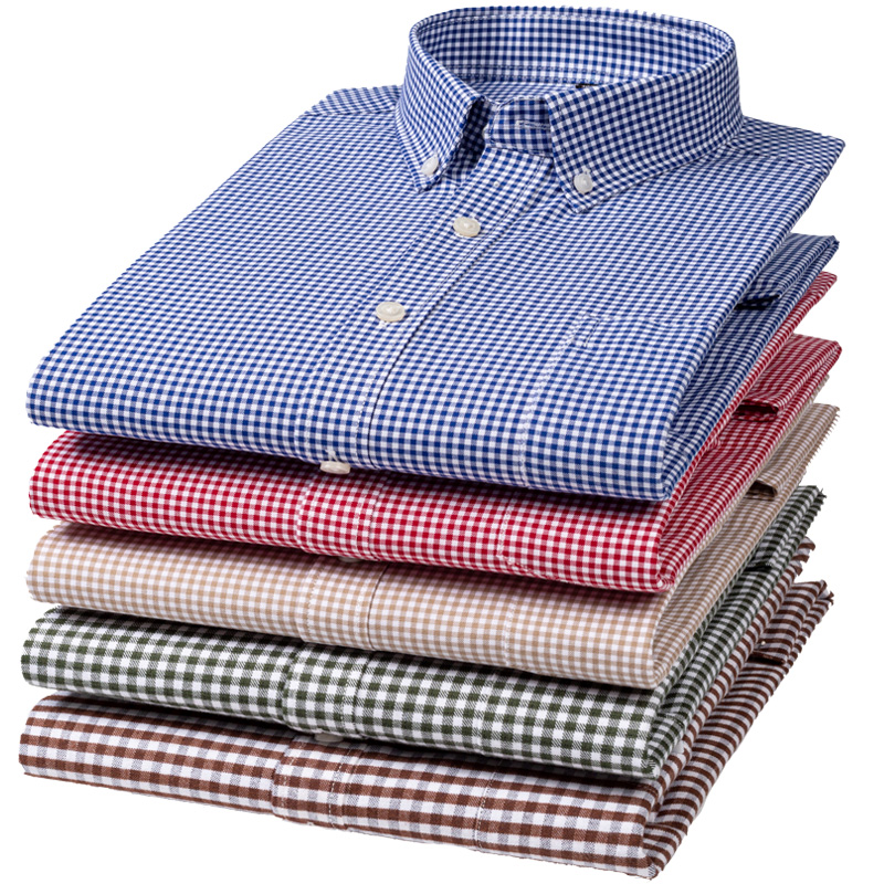 保罗100%纯棉男士小格子长袖衬衫