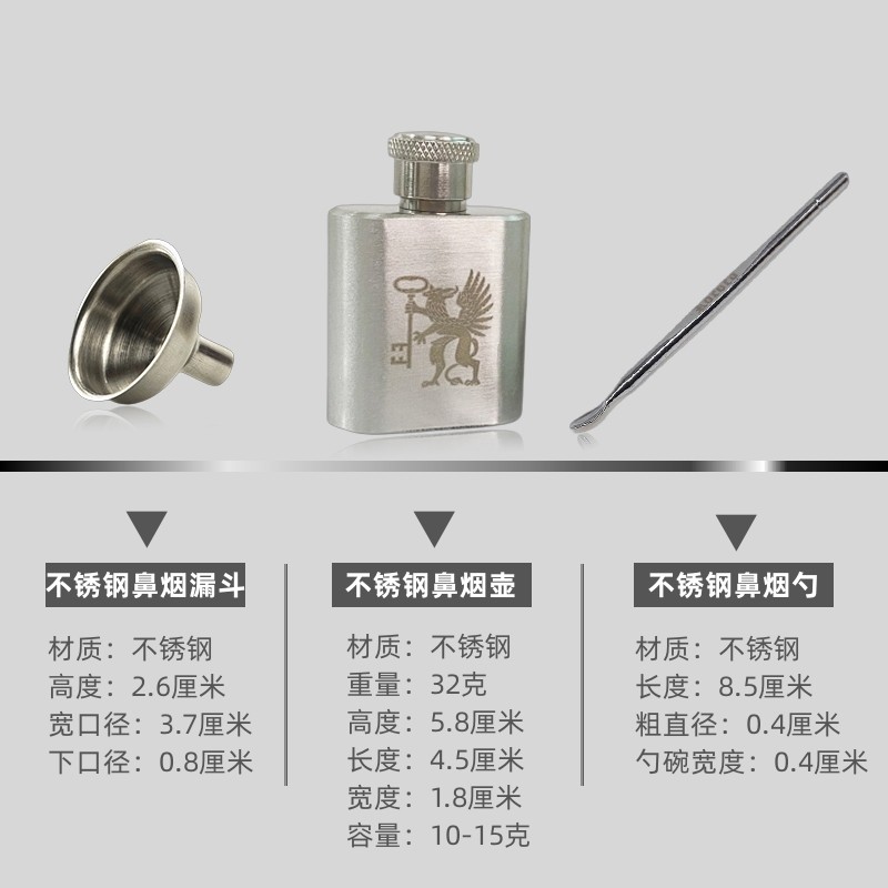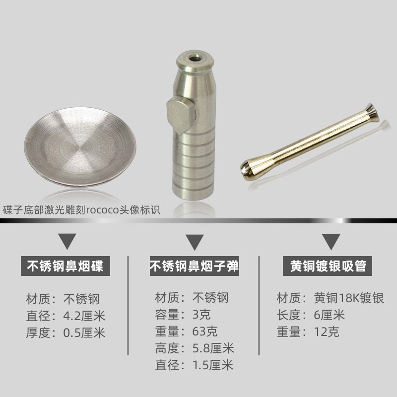 ROCOCO金属不锈钢鼻烟壶子弹勺漏斗碟吸管鼻烟工具优惠组合套装