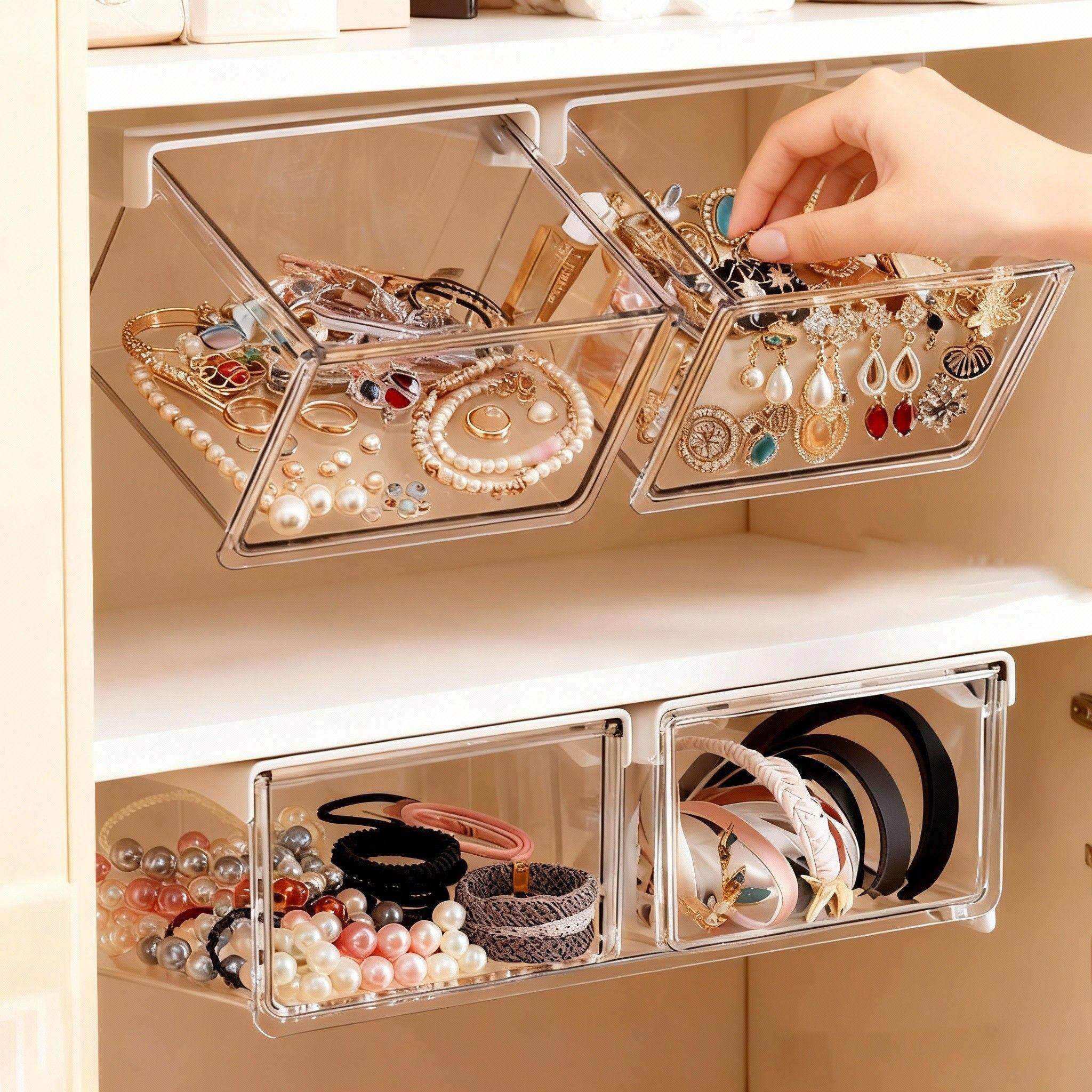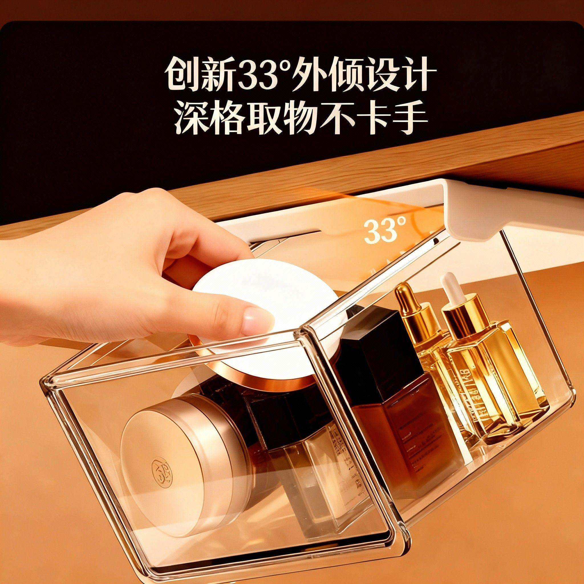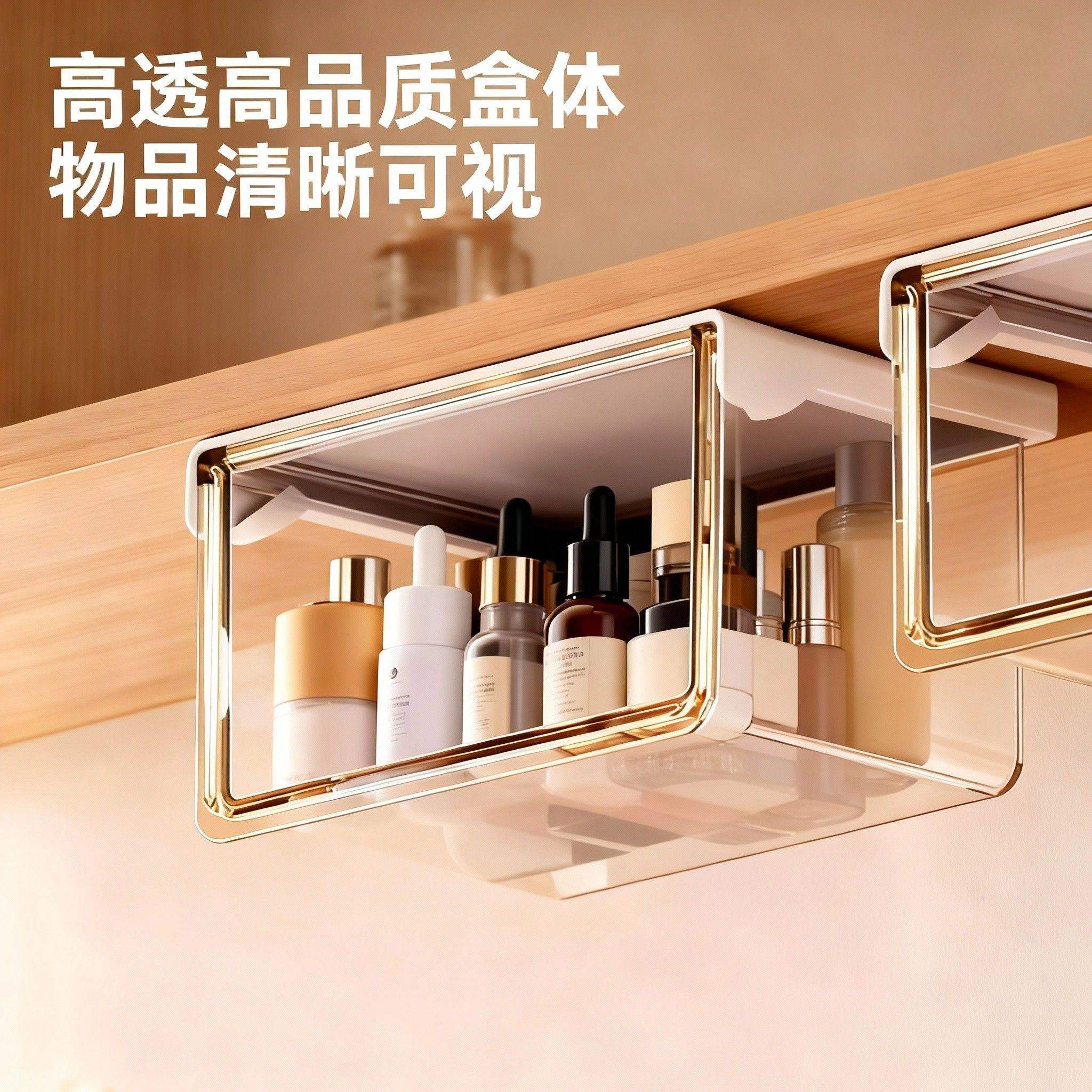 镜柜下抽屉式收纳盒卫生间化妆品收纳神器卸妆棉签口红透明置物架