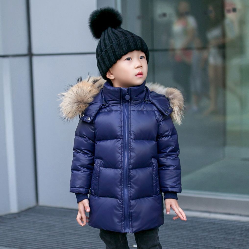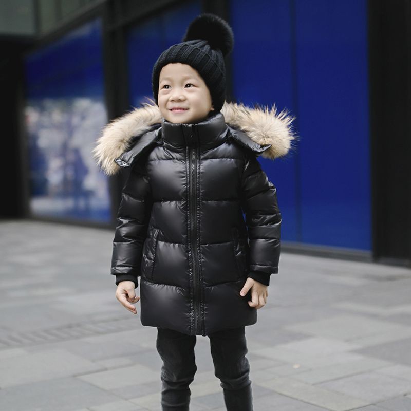 儿童羽绒服男童女童加厚宝宝童装冬装外套中长款小童中大童白鸭绒