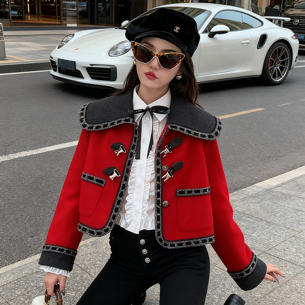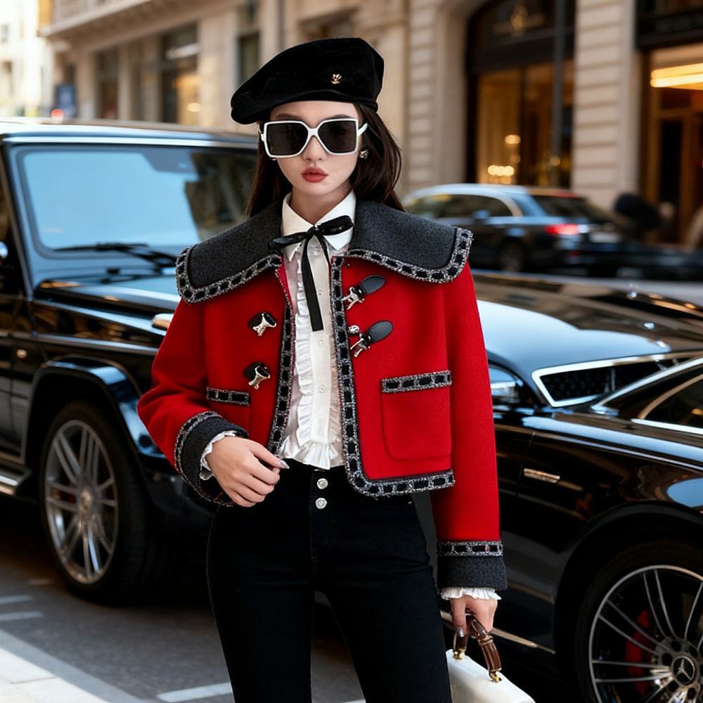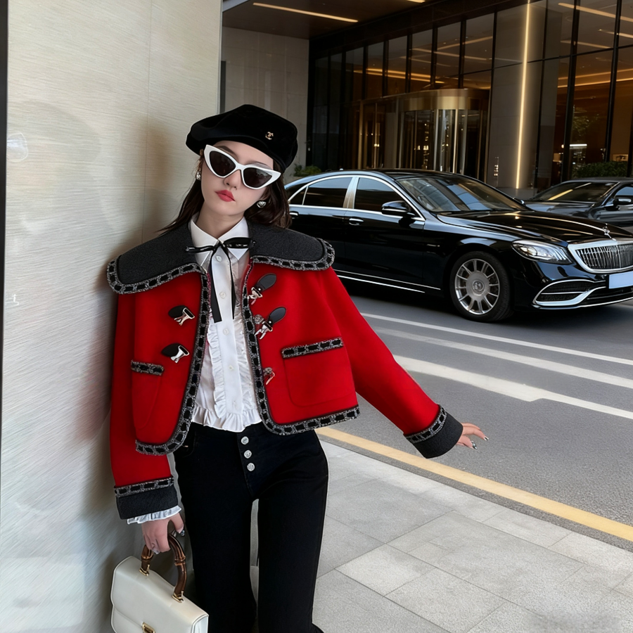 小景家 90支100澳毛 新款摩登时尚风范大翻领双面呢外套