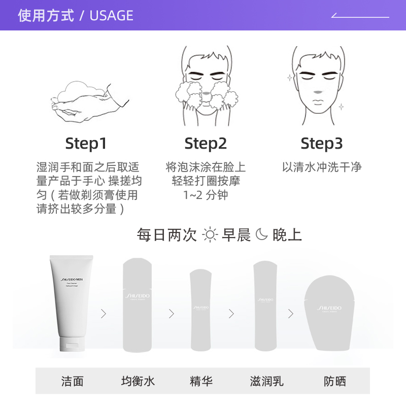 【自营】资生堂男士洁面膏125ml*2支洗面奶洁面乳深层清洁控油