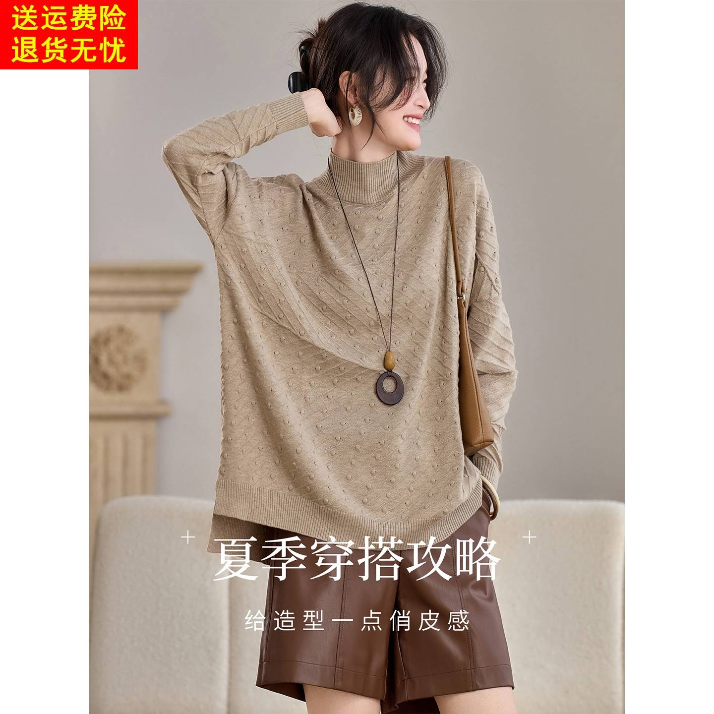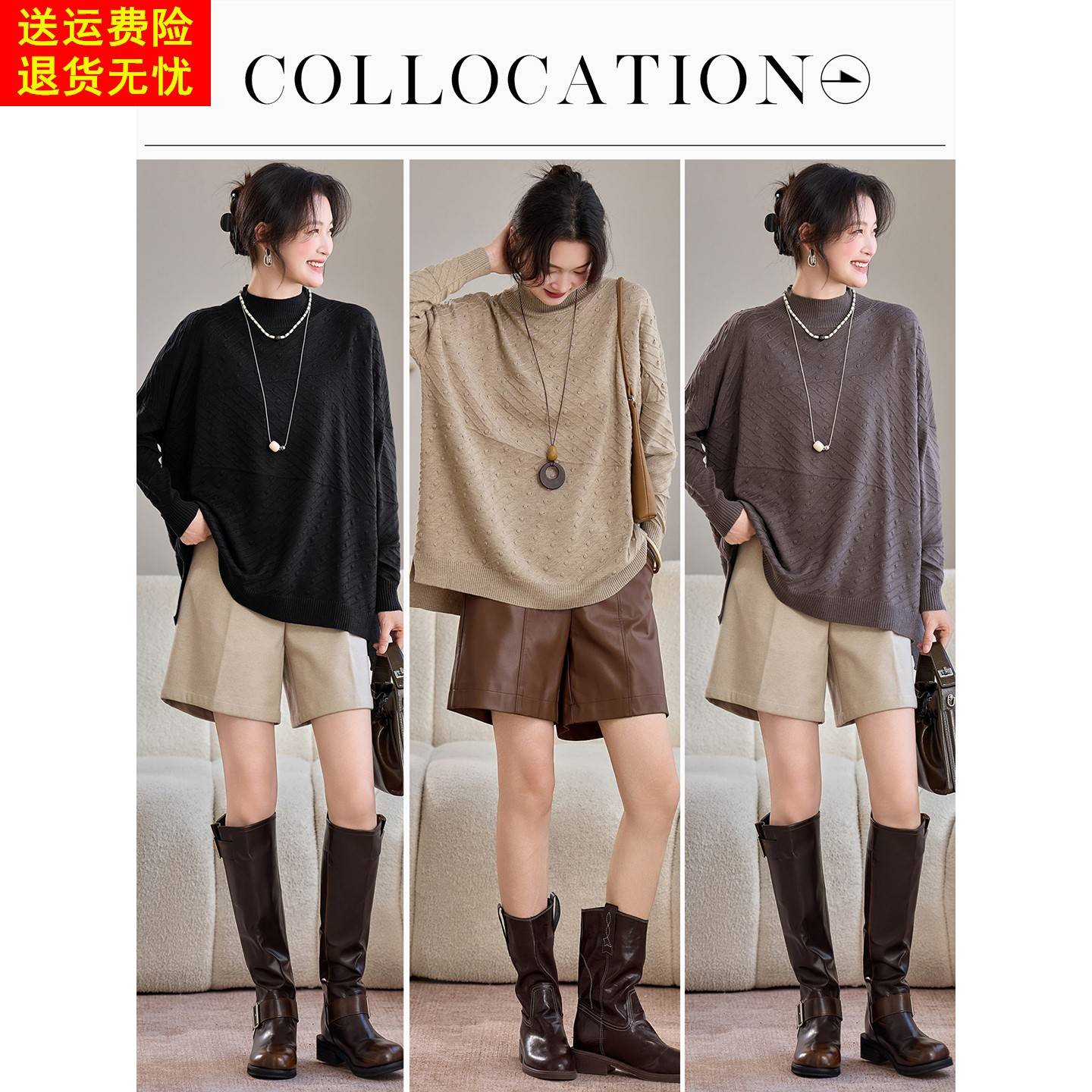 2025新款秋冬季中长款遮屁股宽松慵懒风外穿半高领薄毛衣打底衫女