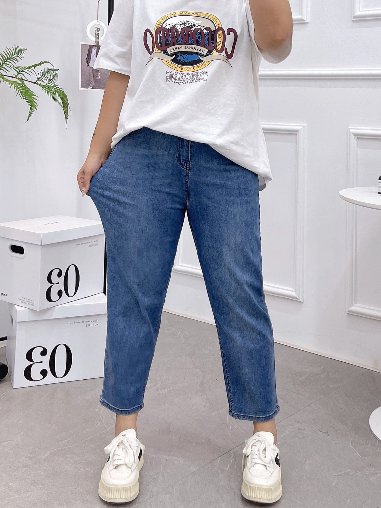 大码女装牛仔裤女夏季2023新款胖mm老爹裤高腰显瘦哈伦裤九分裤子