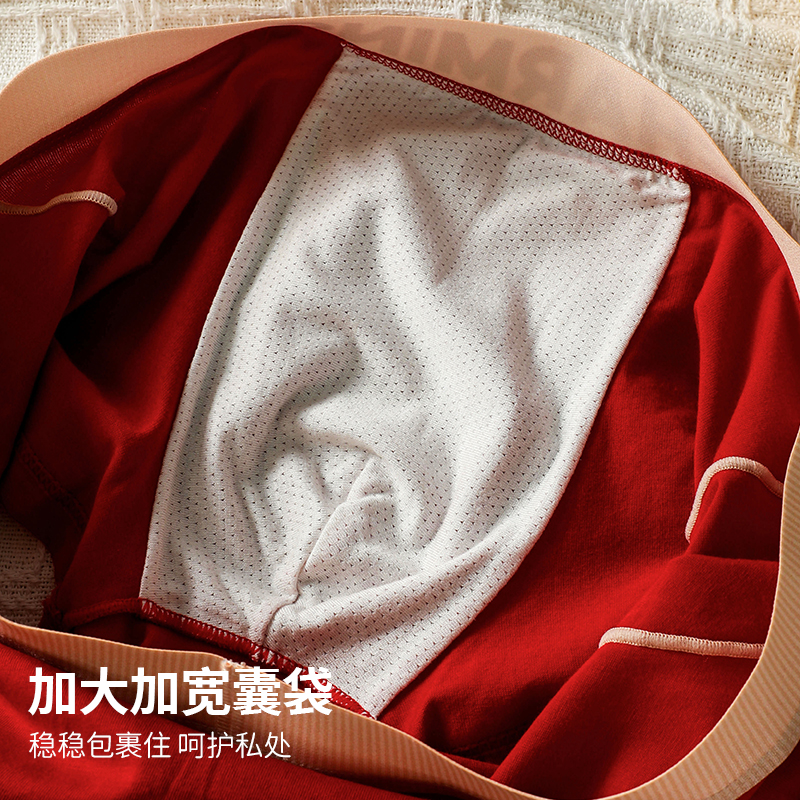 男士内裤大红纯棉柔软舒适本命年红色男生平角裤短裤衩结婚四角裤