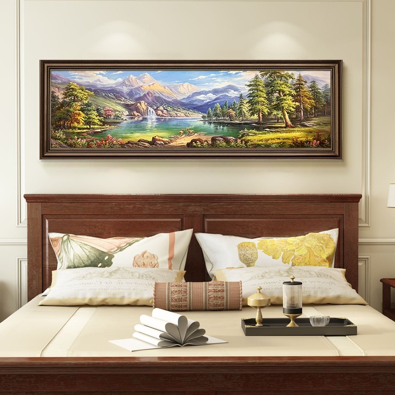 卧室床头挂画美式聚宝盆山水风景主卧房间装饰画欧式客厅墙面壁画