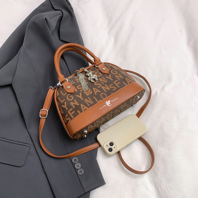 高级质感复古印花女包2025新款轻奢时尚手提包贝壳包单肩斜挎包