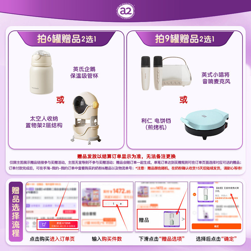 【自营】a2紫白金3段婴幼儿牛奶粉1岁以上成长乳粉900g*3罐