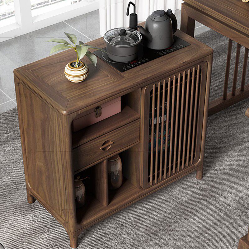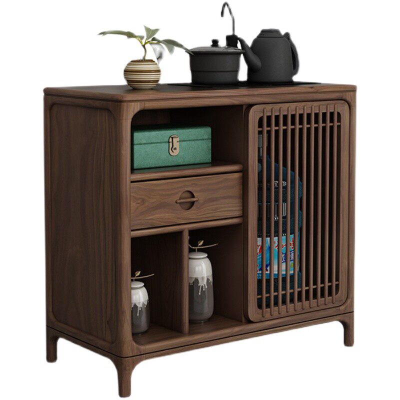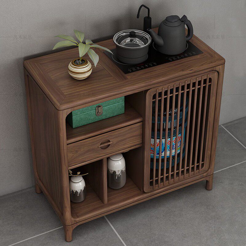新中式黑胡桃木茶水柜茶边几下置水桶储物柜实木小型茶水台餐边柜
