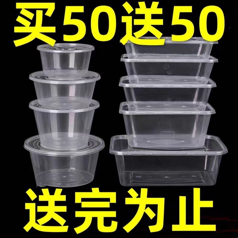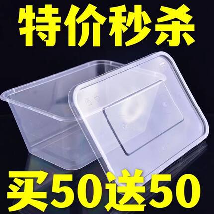 【买50送50】环保一次性打包盒长方形饭盒带盖透明塑料快餐盒整箱