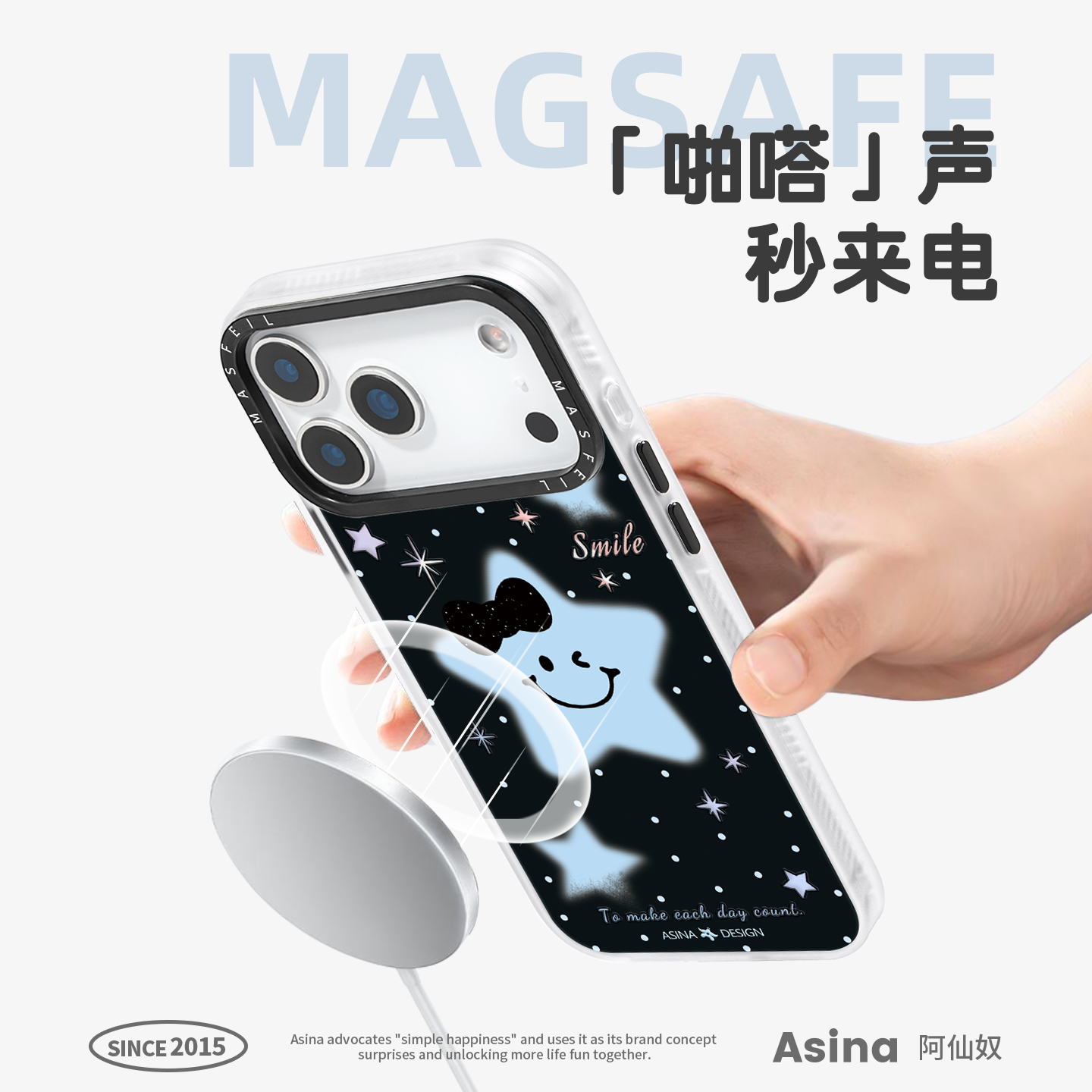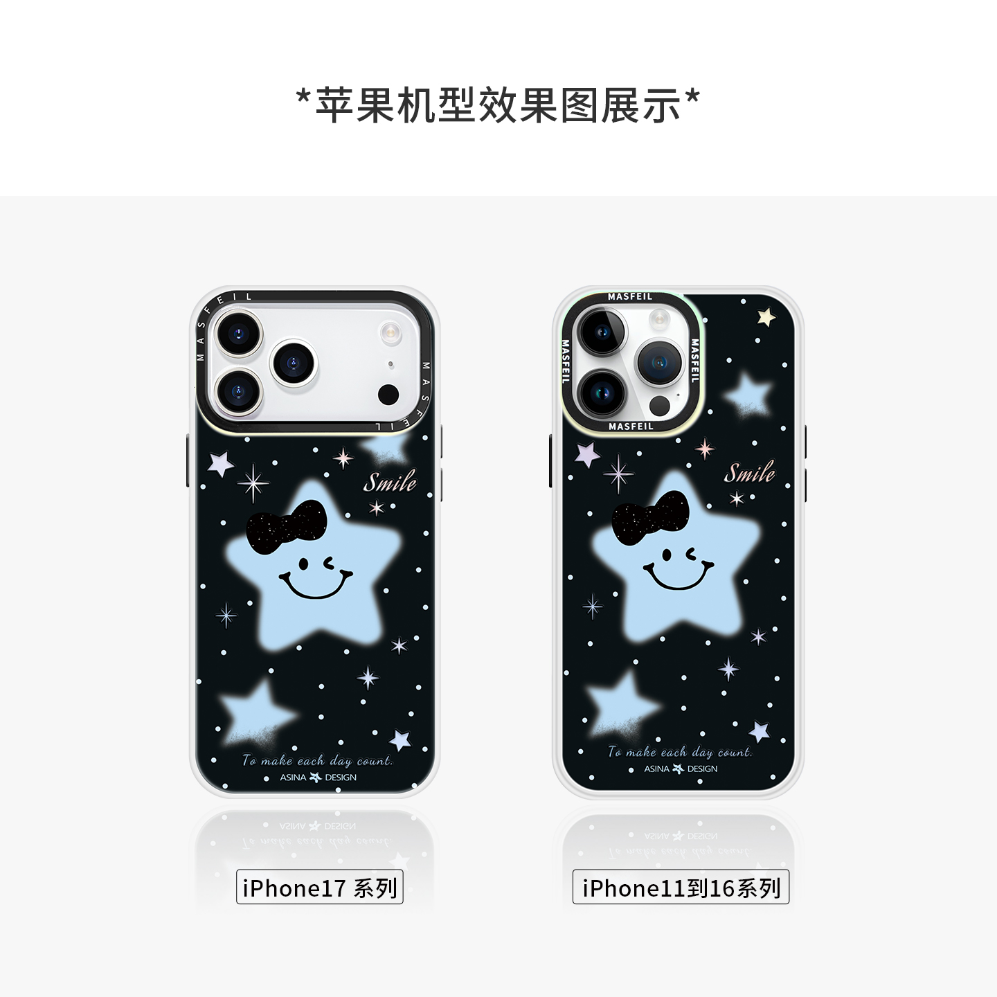 微笑星星适用苹果17Promax手机壳15磁吸支架iPhone16Pro保护套好看创意plus全包可爱14网红p13新款高级感
