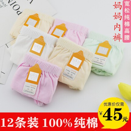 华祝中老年人高腰女士纯棉三角内裤妈妈宽松全棉大码短裤老人裤衩