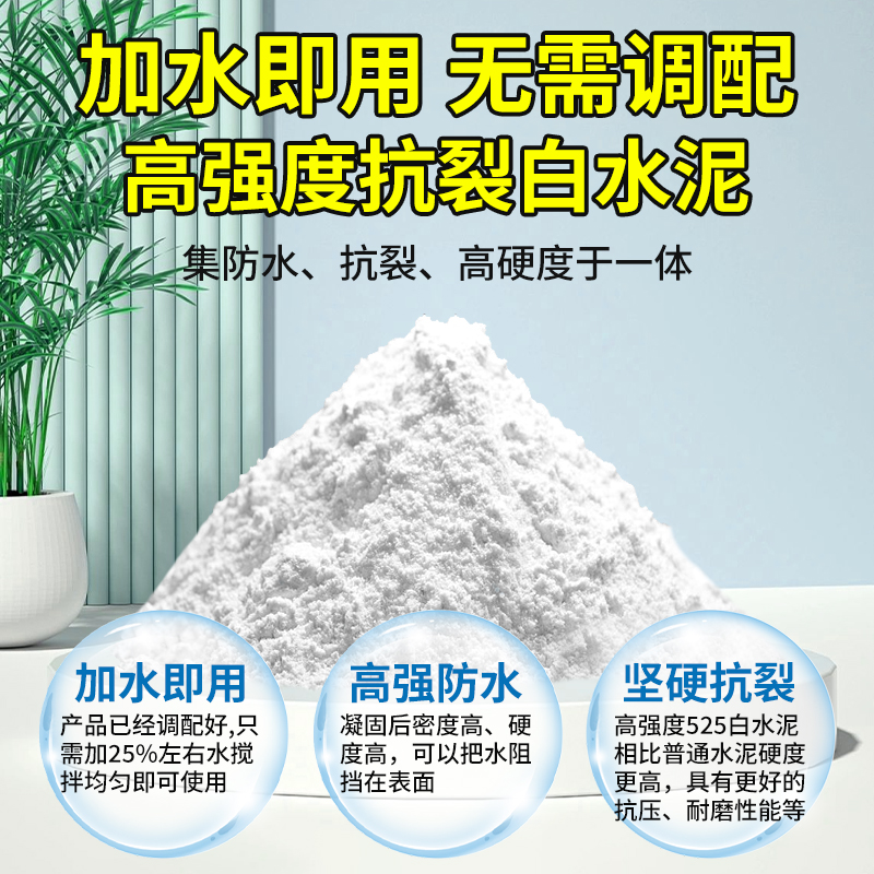 德国卫生间速干防水白水泥瓷砖缝隙填缝剂厕所水泥地面修补堵漏王