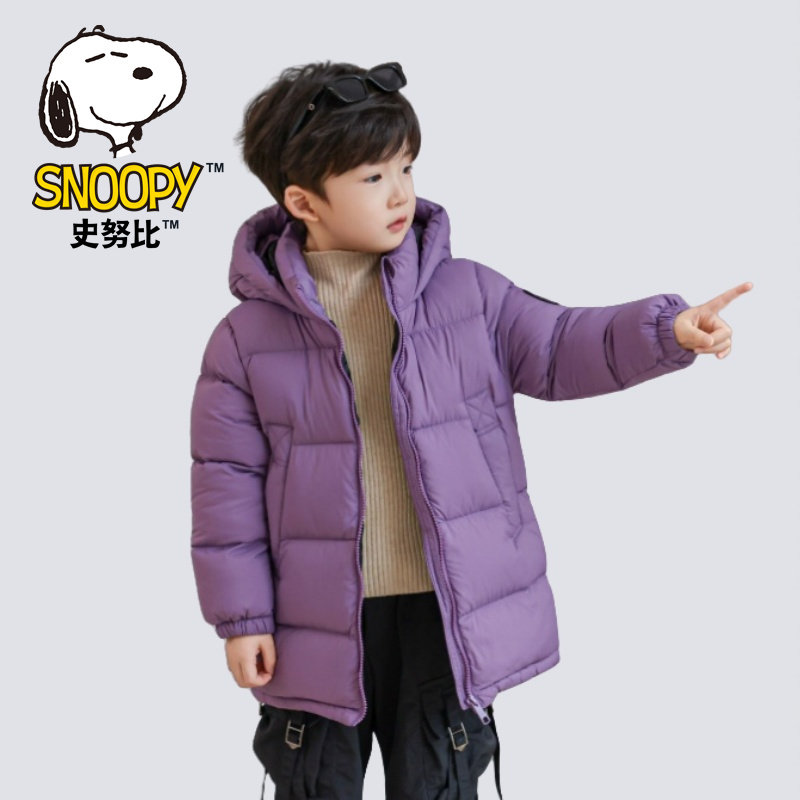 史努比2025新款儿童羽绒服中长加厚白鸭绒外套防风保暖男女童冬装