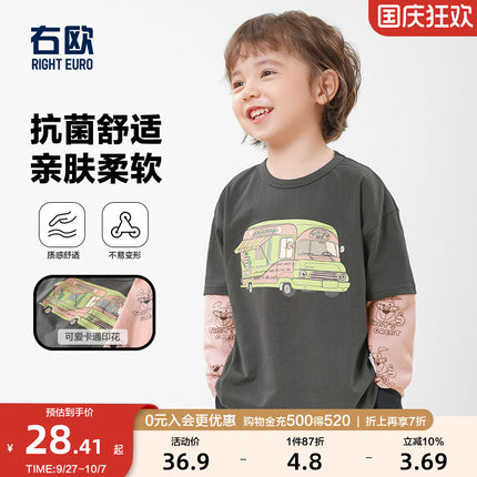 右欧男童假两件长袖T恤秋季新款童装儿童衣服宝宝秋季打底衫上衣