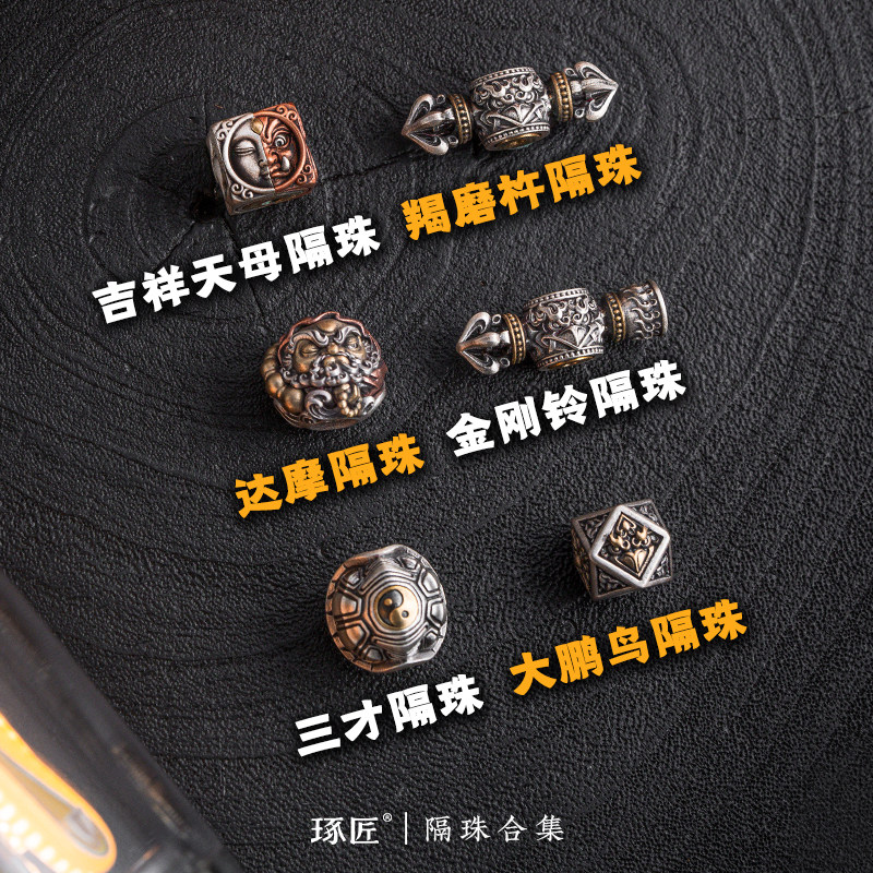 琢匠手串隔珠合集文玩diy配饰国风串珠配珠猴头星月银饰配件散珠