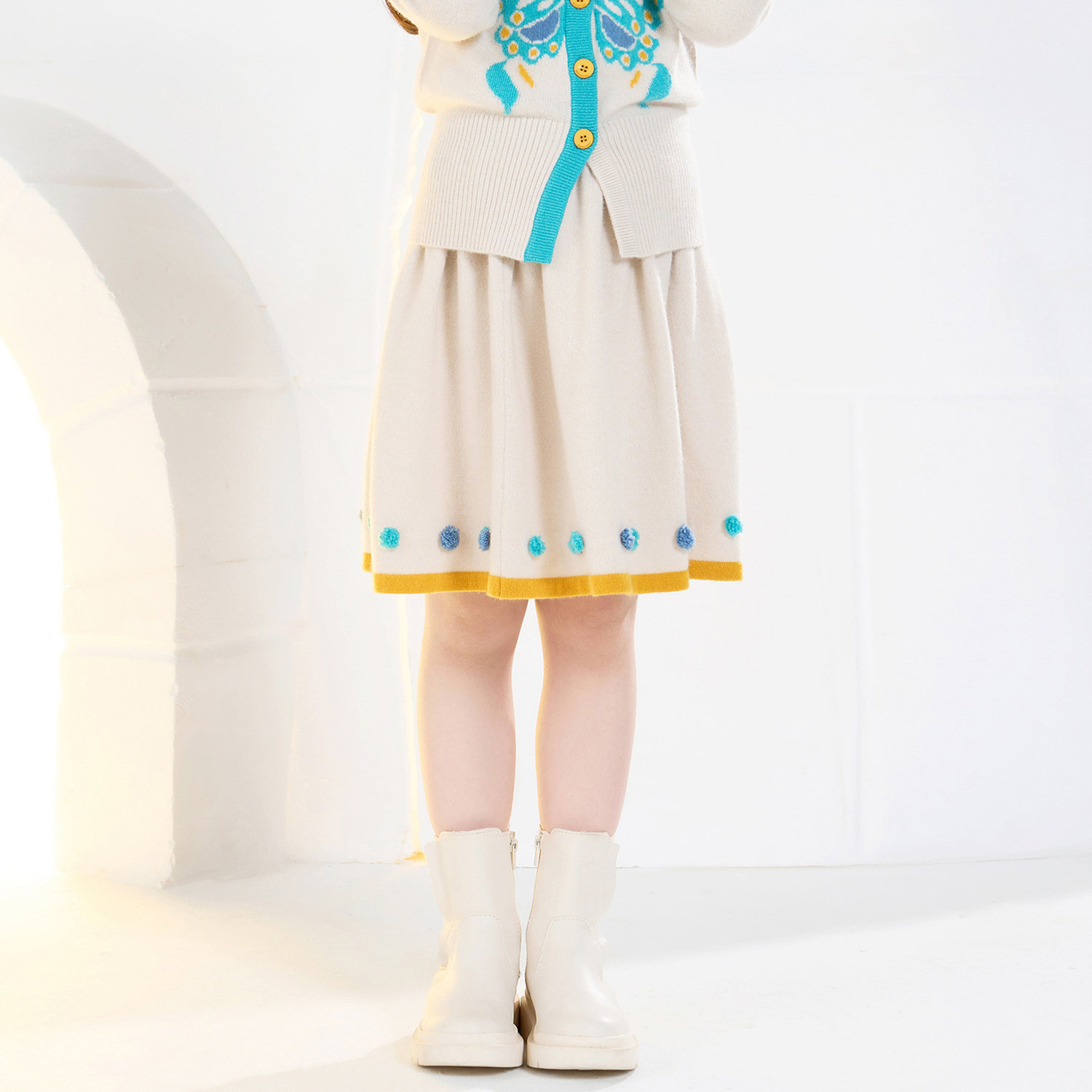 女童公主可爱毛球装饰羊绒半身裙鄂尔多斯童装