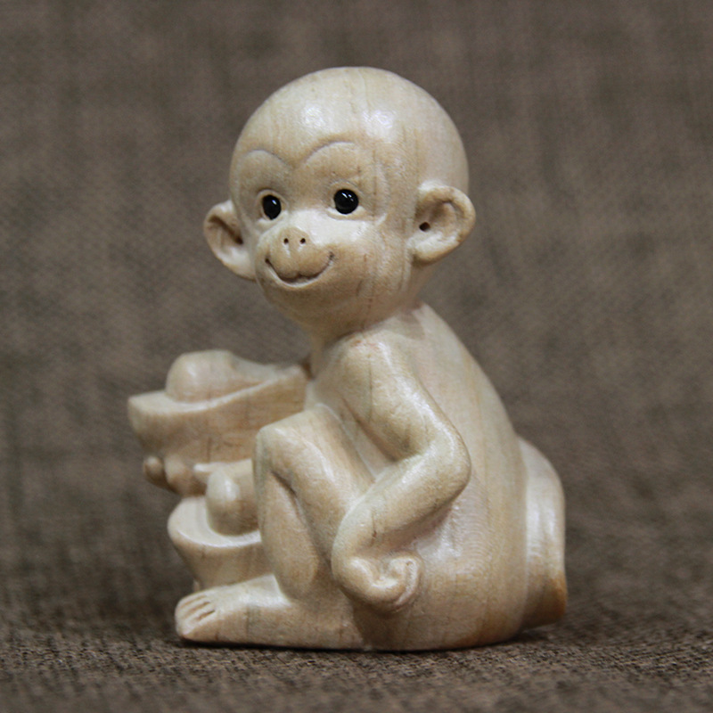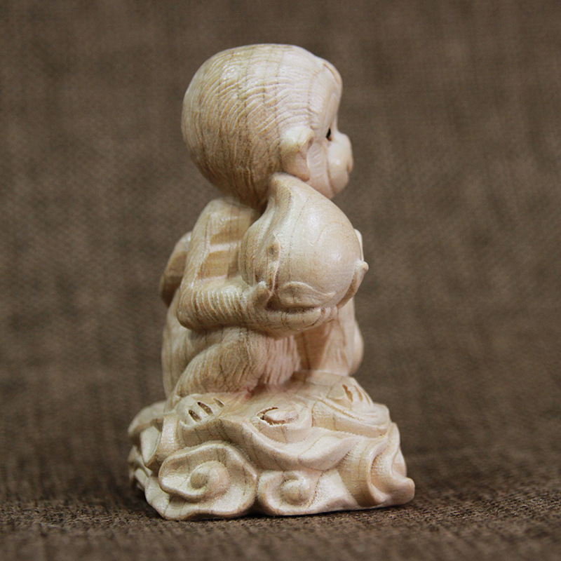 肥城桃木原木雕生肖小猴子摆件灵猴献寿桃礼品祝寿手把2025吉祥物