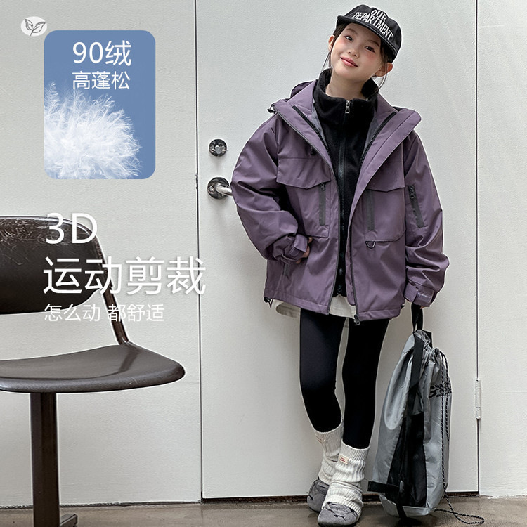 女童冲锋衣加厚2025年秋冬新款中大童三合一户外服防风夹克衫