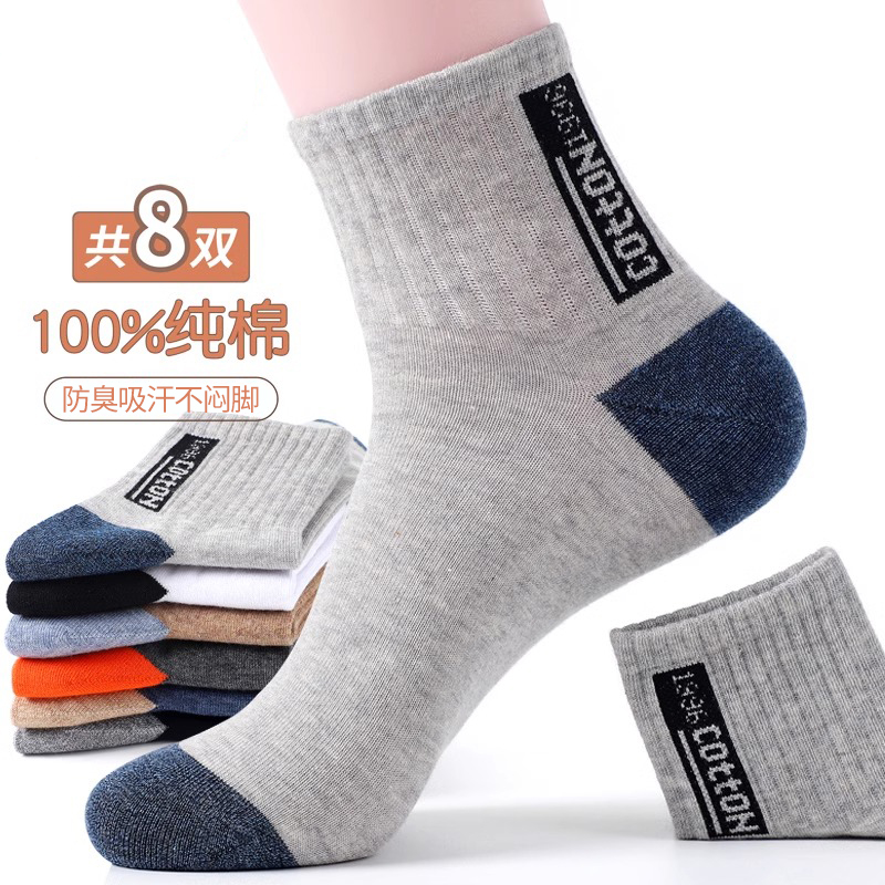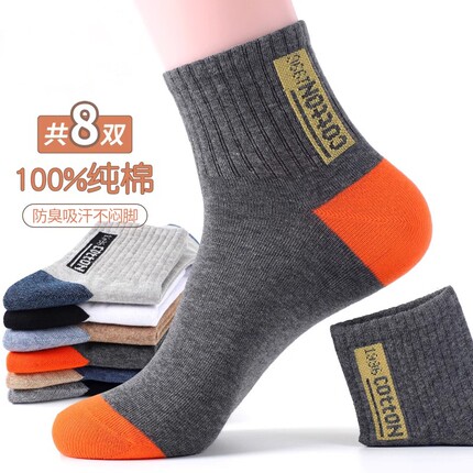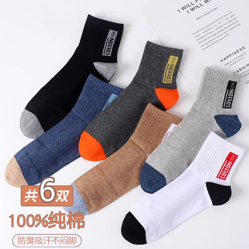 袜子男春秋季中筒袜吸汗透气长筒袜纯棉防臭抑菌青少年运动袜潮袜