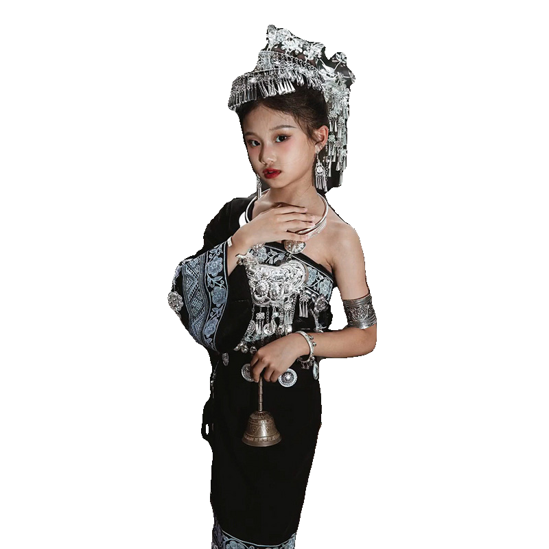儿童苗族服装女童少数民族演出服云南贵州土家族傣族舞蹈表演服饰